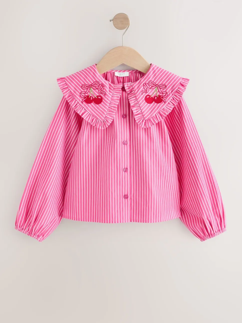 Bande rose – Chemisier à manches longues avec col brodé cerise (3-16ans)