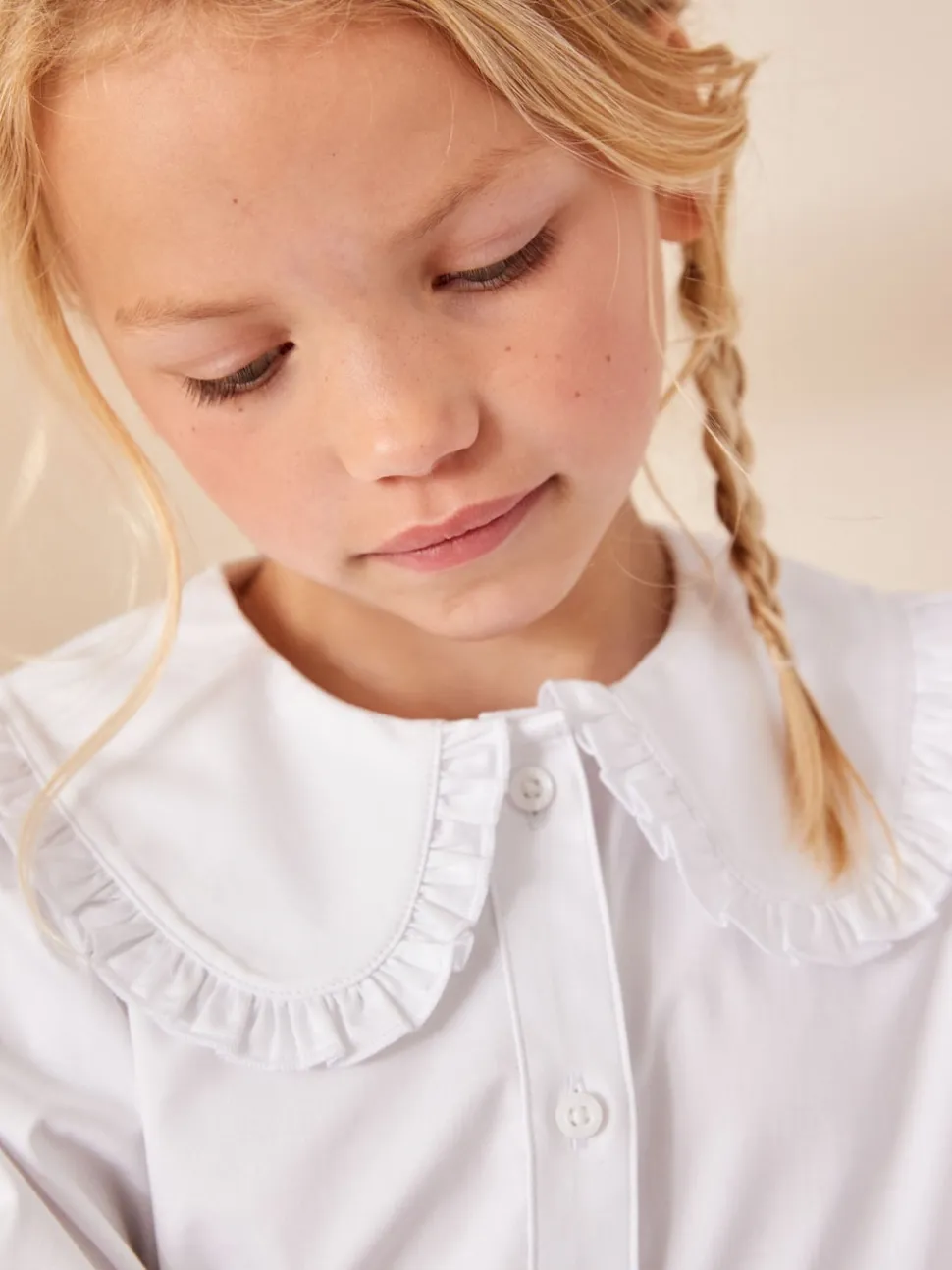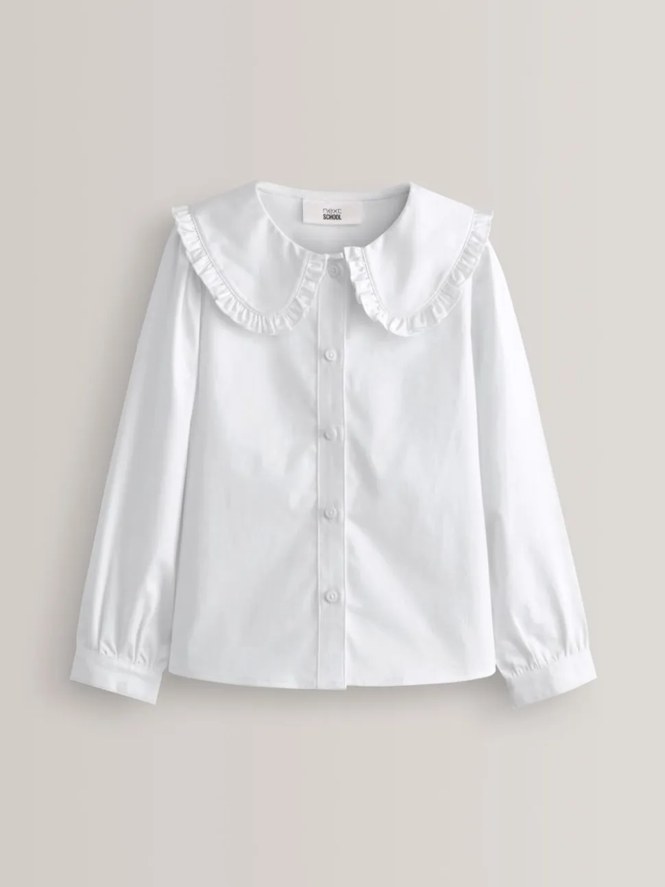 Blanc – Chemisier scolaire à manches longues en coton extensible haut de gamme à volants (3-14ans)