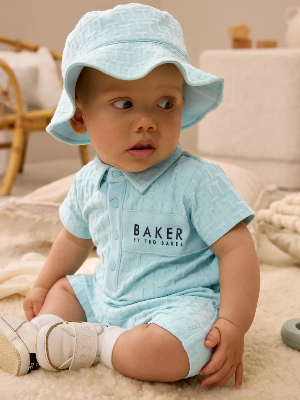 Bleu – Baker by Ted Baker ensemble barboteuse et chapeau texturé