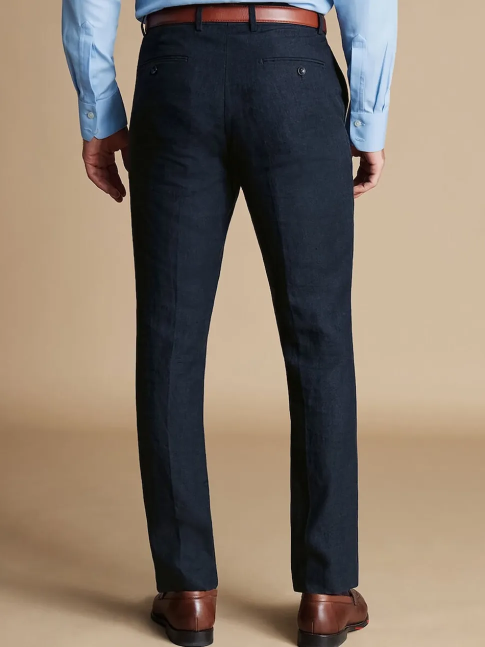 Bleu – Charles Tyrwhitt Coupe ajustée 100% Lin Pantalons
