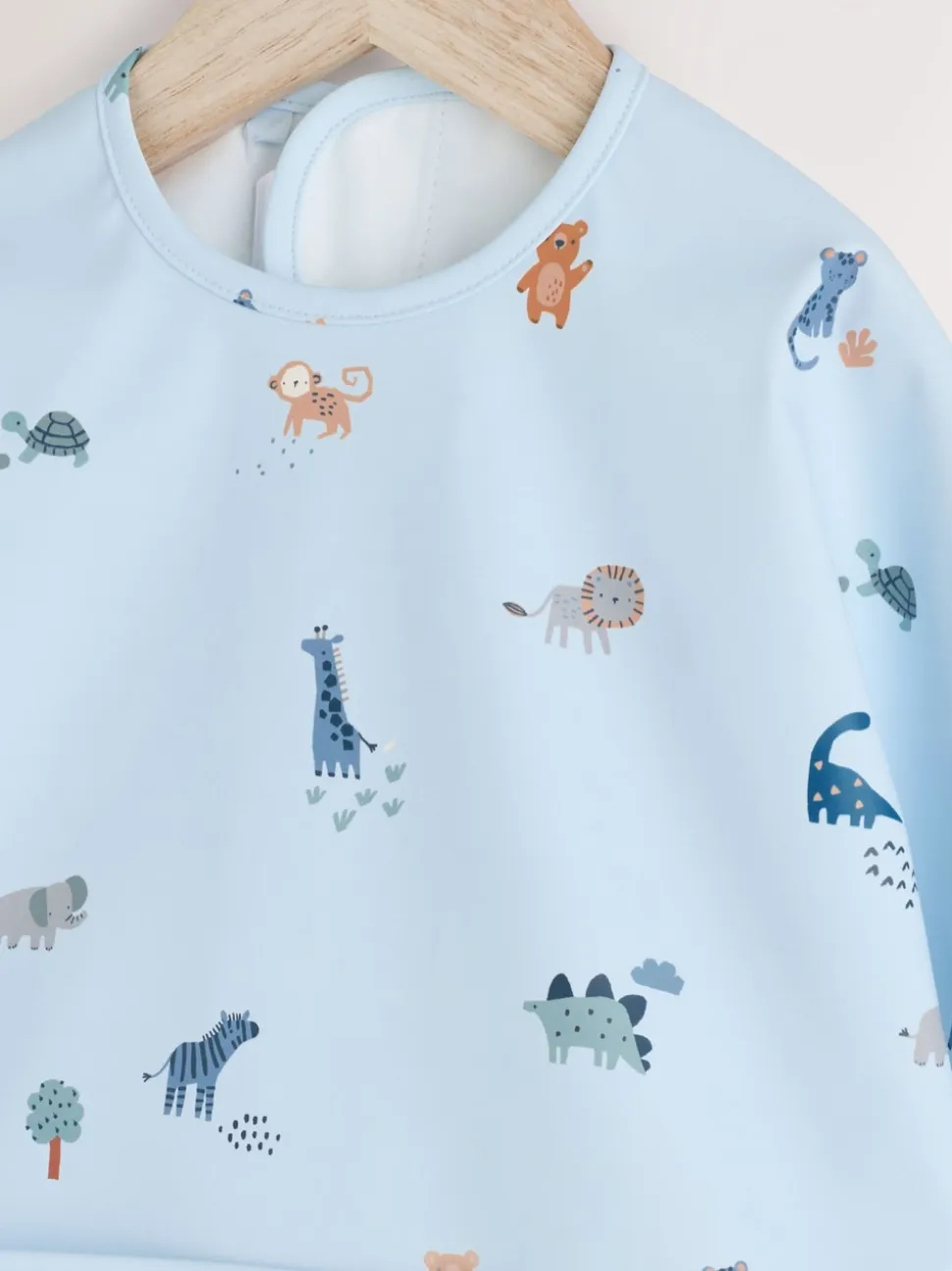 Bleu dinosaure motif jungle – Bavoir à manches de sevrage et d’alimentation