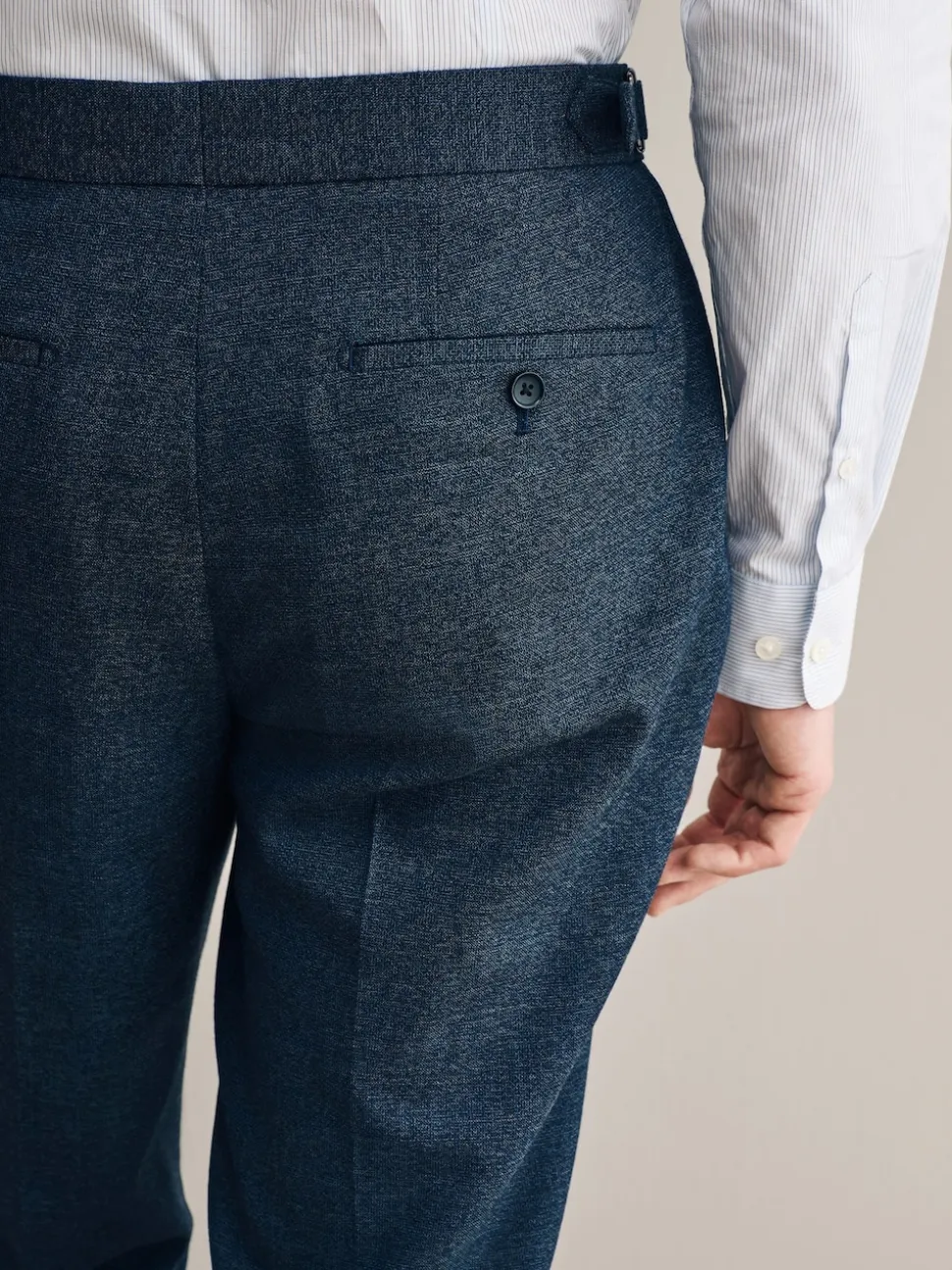Bleu marine – Pantalon Signature Smart en laine italienne texturée avec pattes d’ajustement sur les côtés