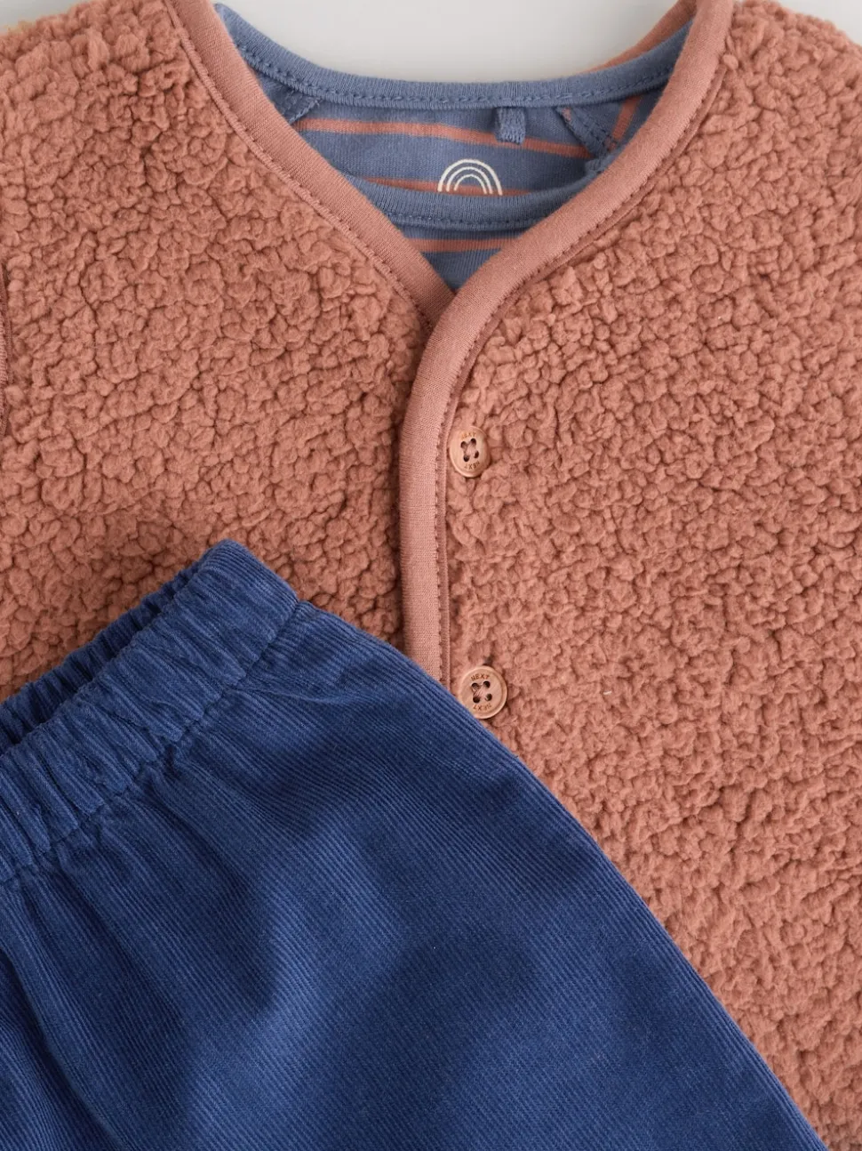 Bleu/marron Bear Hugs Slogan Borg – Ensemble Gilet et Leggings bébé (0mois-2ans)