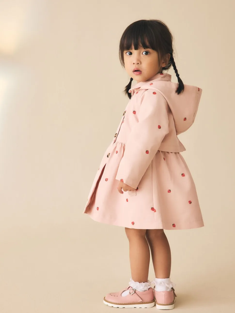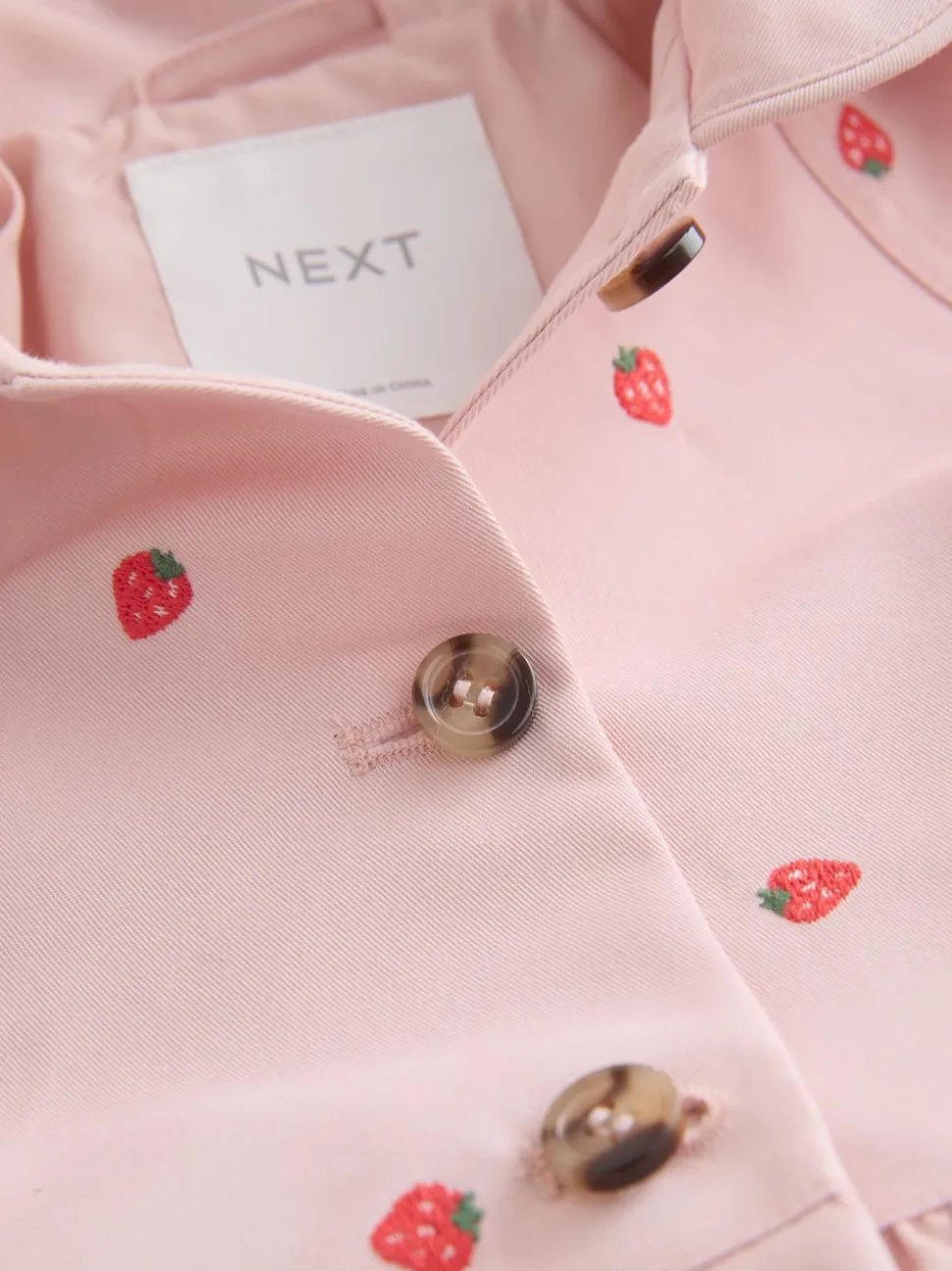 Broderie rose – Manteau boutonné résistant à la douche (3mois-7ans)