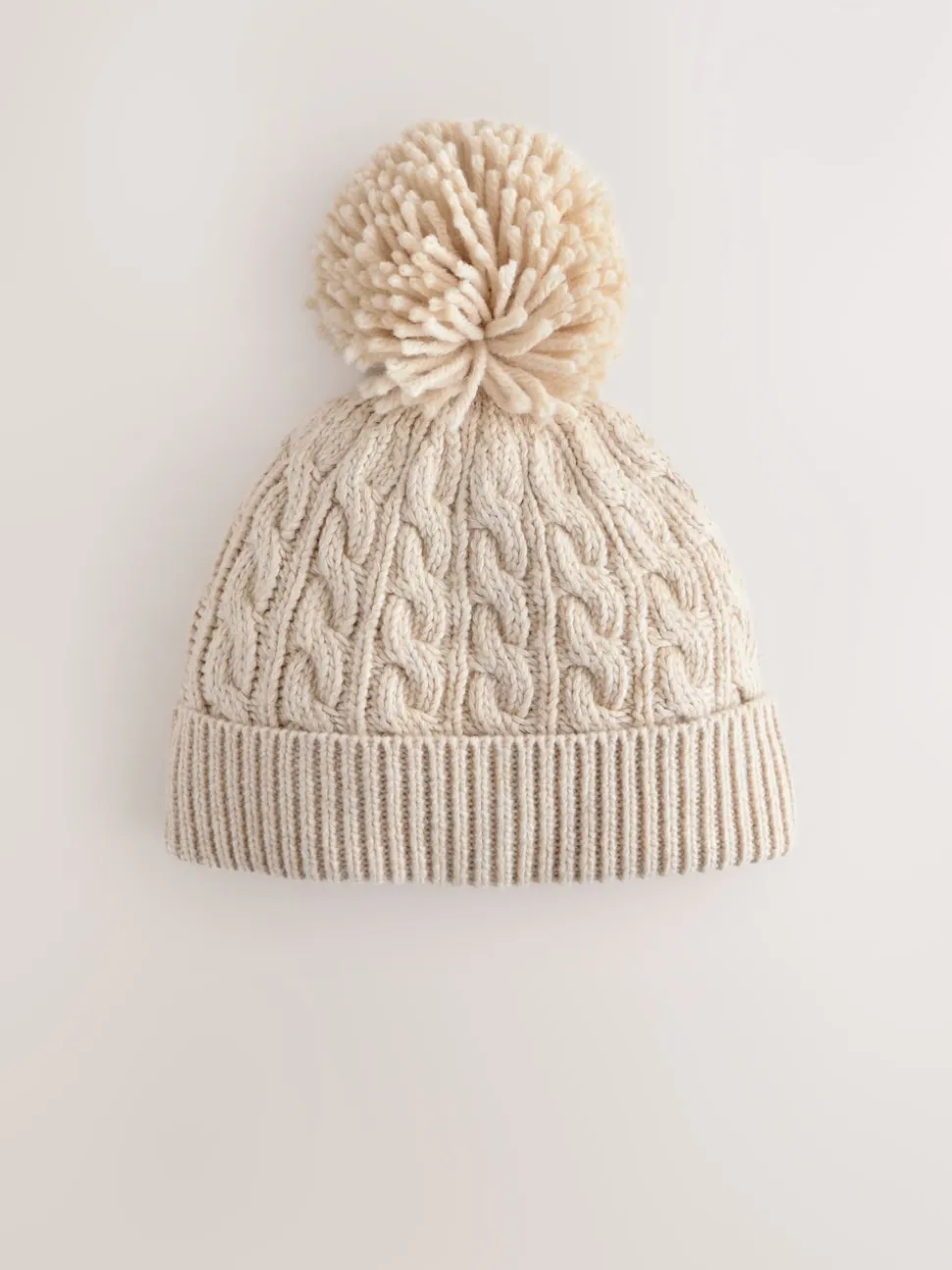 Crème – Bonnet à pompon en maille torsadée