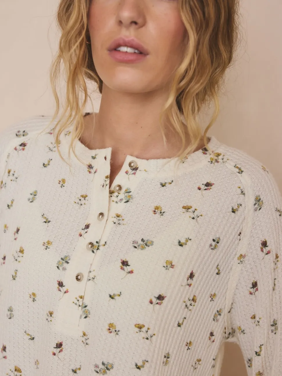 Crème fleuri – Pyjama à manches longues Cosy Waffle