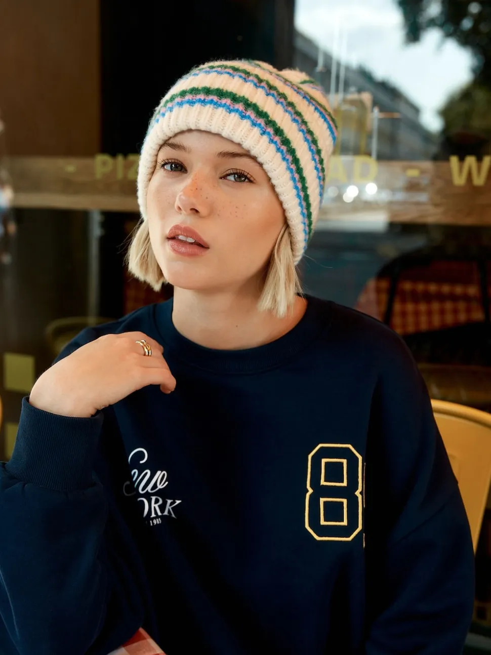 Crème/rose/vert – Bonnet en maille