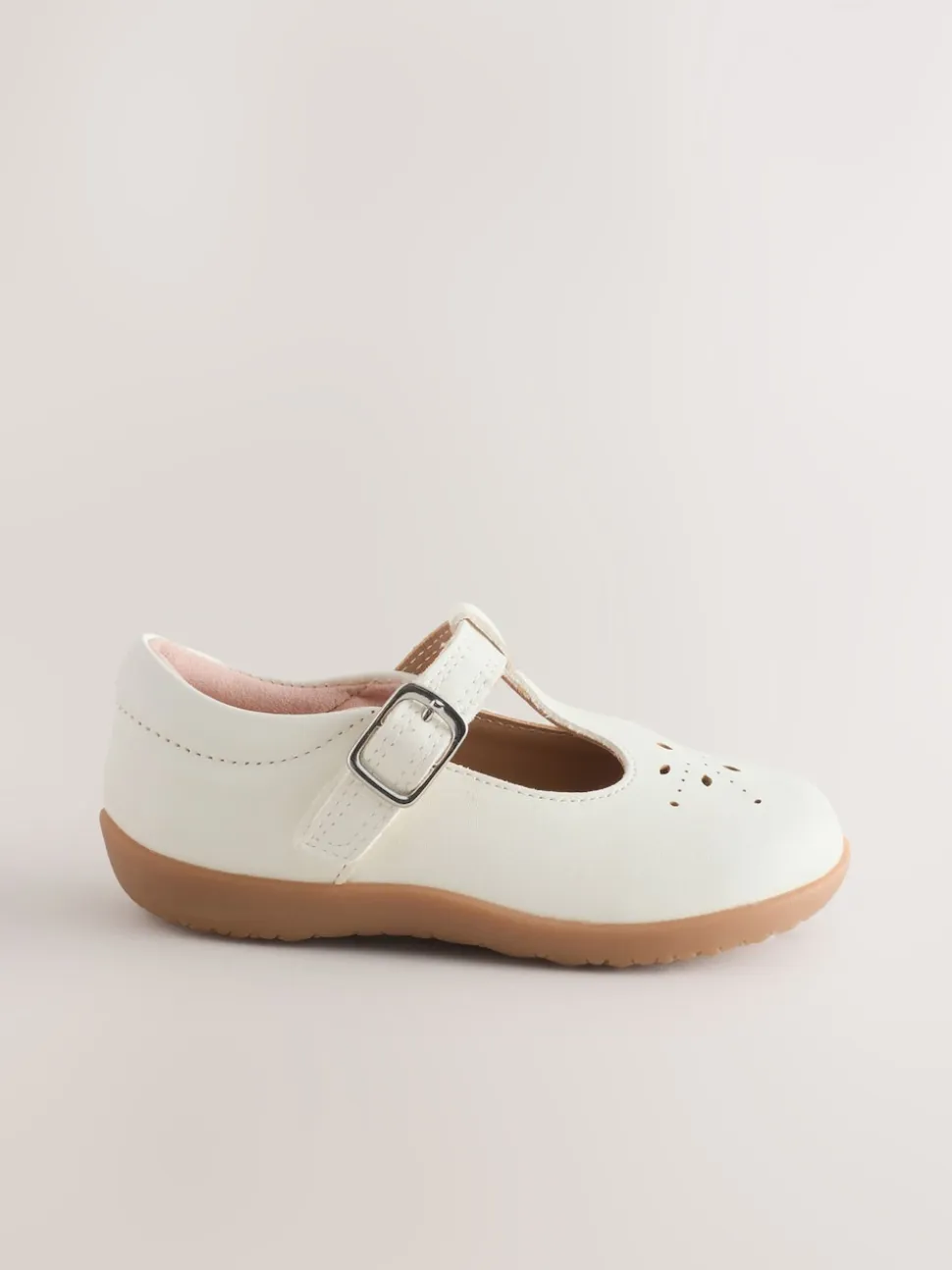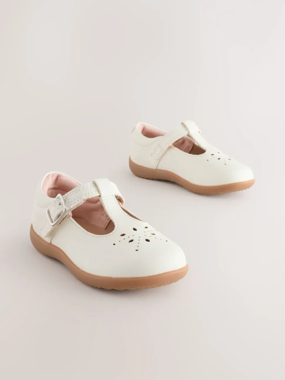 Cuir blanc – Chaussures premiers pas avec barre en T à fermeture par contact