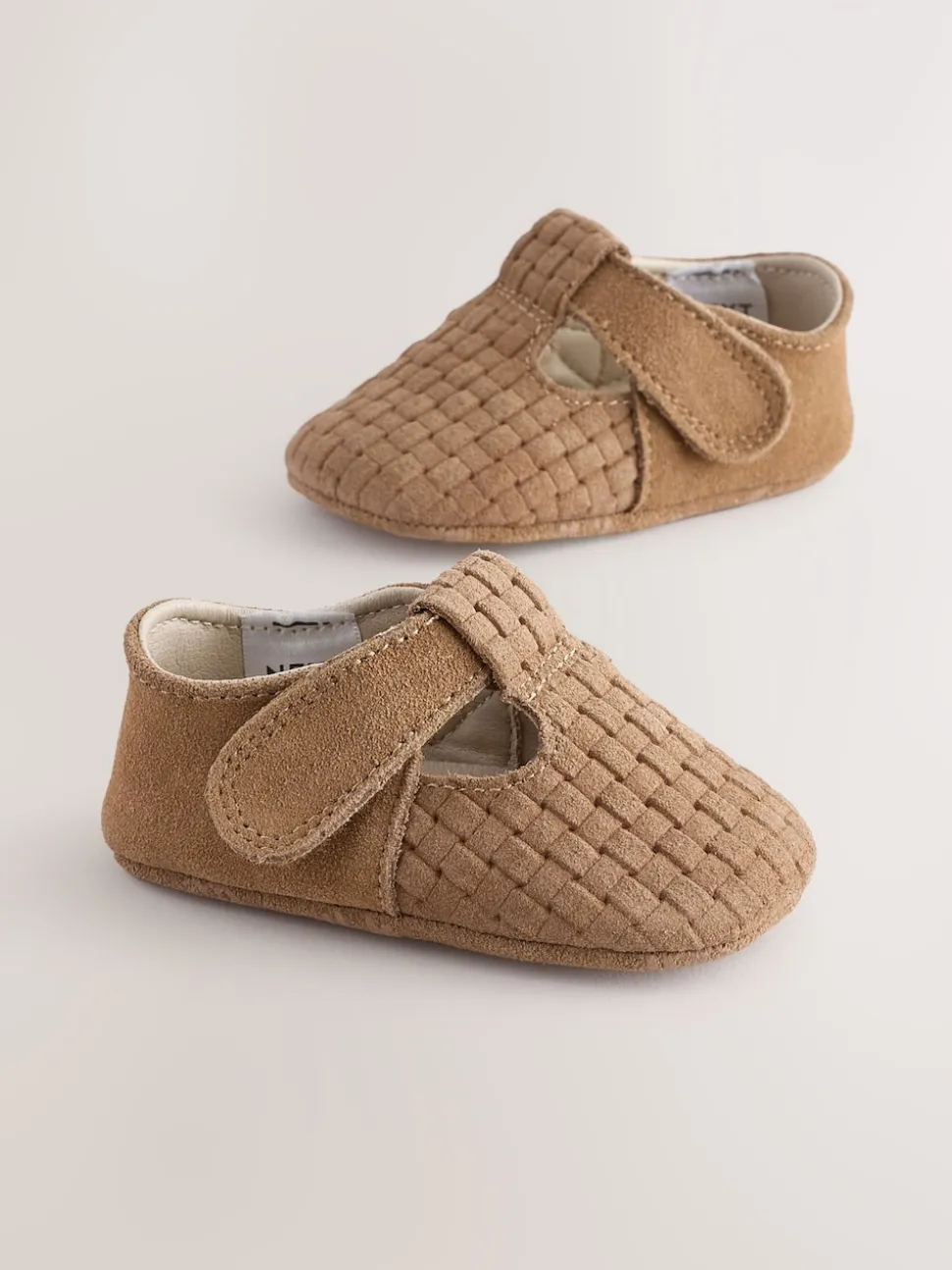 Daim tissé Fauve – Leather Bébé T-Bar Chaussures (0-24mths)