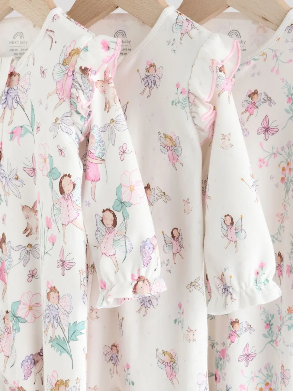 Écru motif fée – Lot de 3 dors-bien bébé à fermeture éclair bidirectionnelle (0-2ans)
