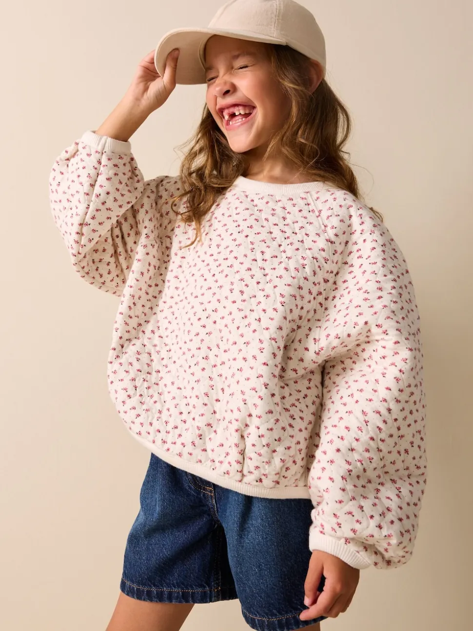 Fleur crème Ditsy – Sweat-shirt matelassé (3-16ans)