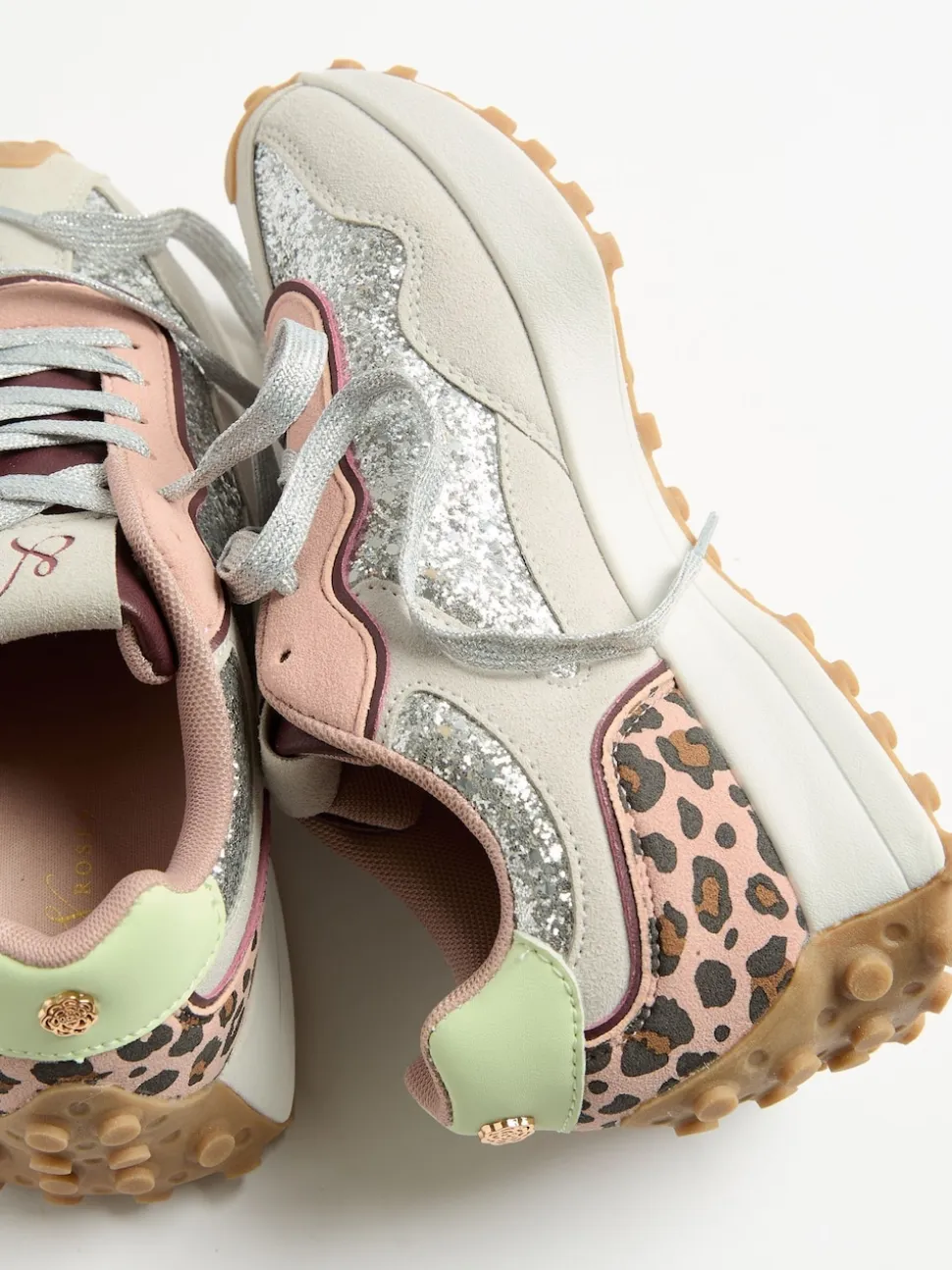 Glitter d’argent – Baskets de jogging Love & Roses Mix Material Retro Comfort