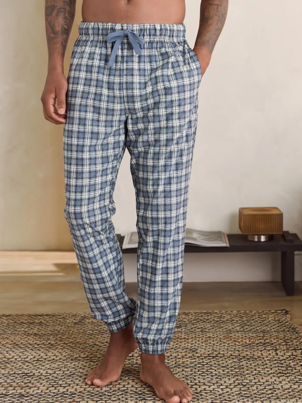 Gris à carreaux Grindle – Bas de pyjama Motionflex douillet à poignets