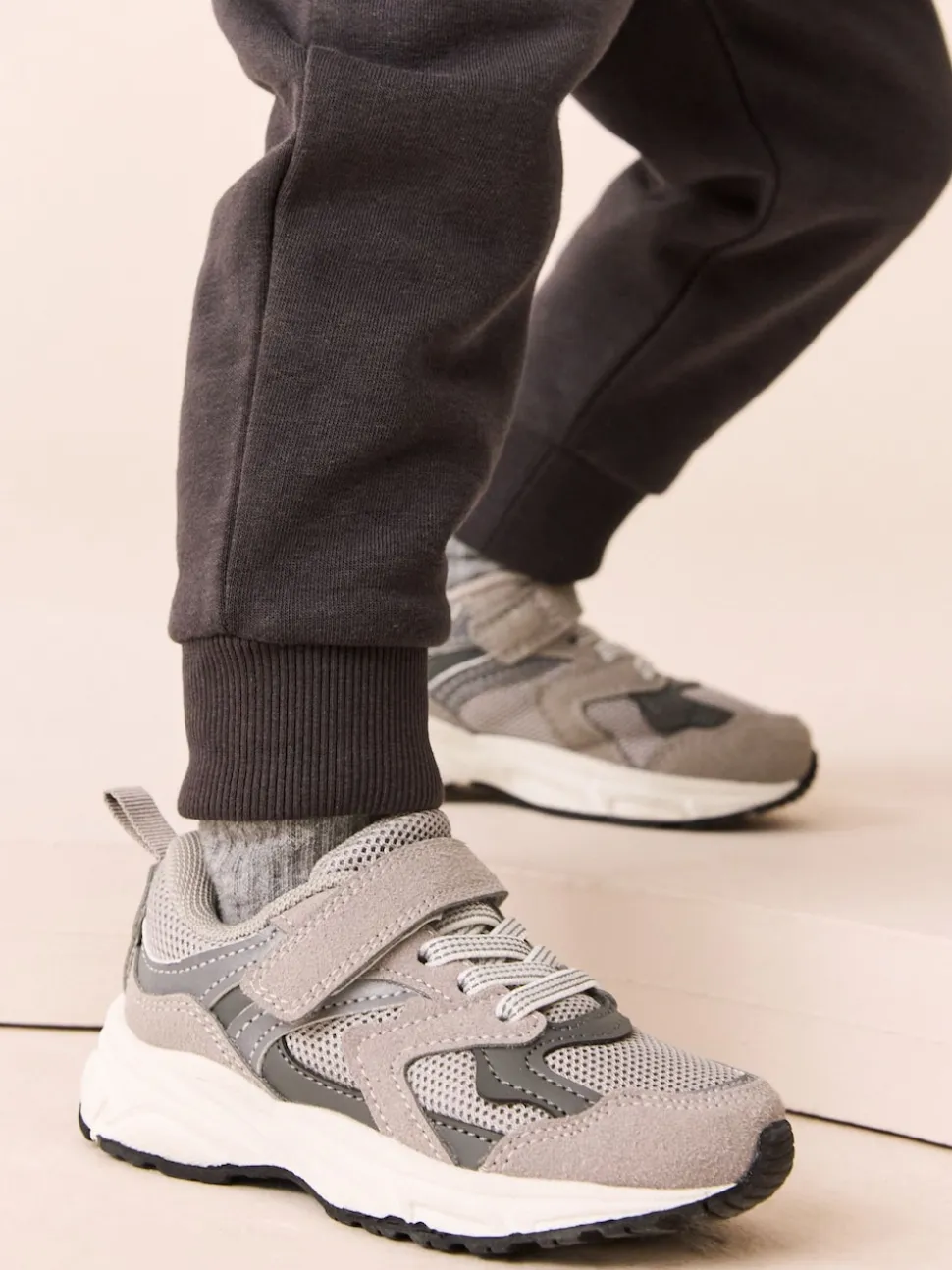 Gris – Baskets à lacets élastiques à fermeture tactile