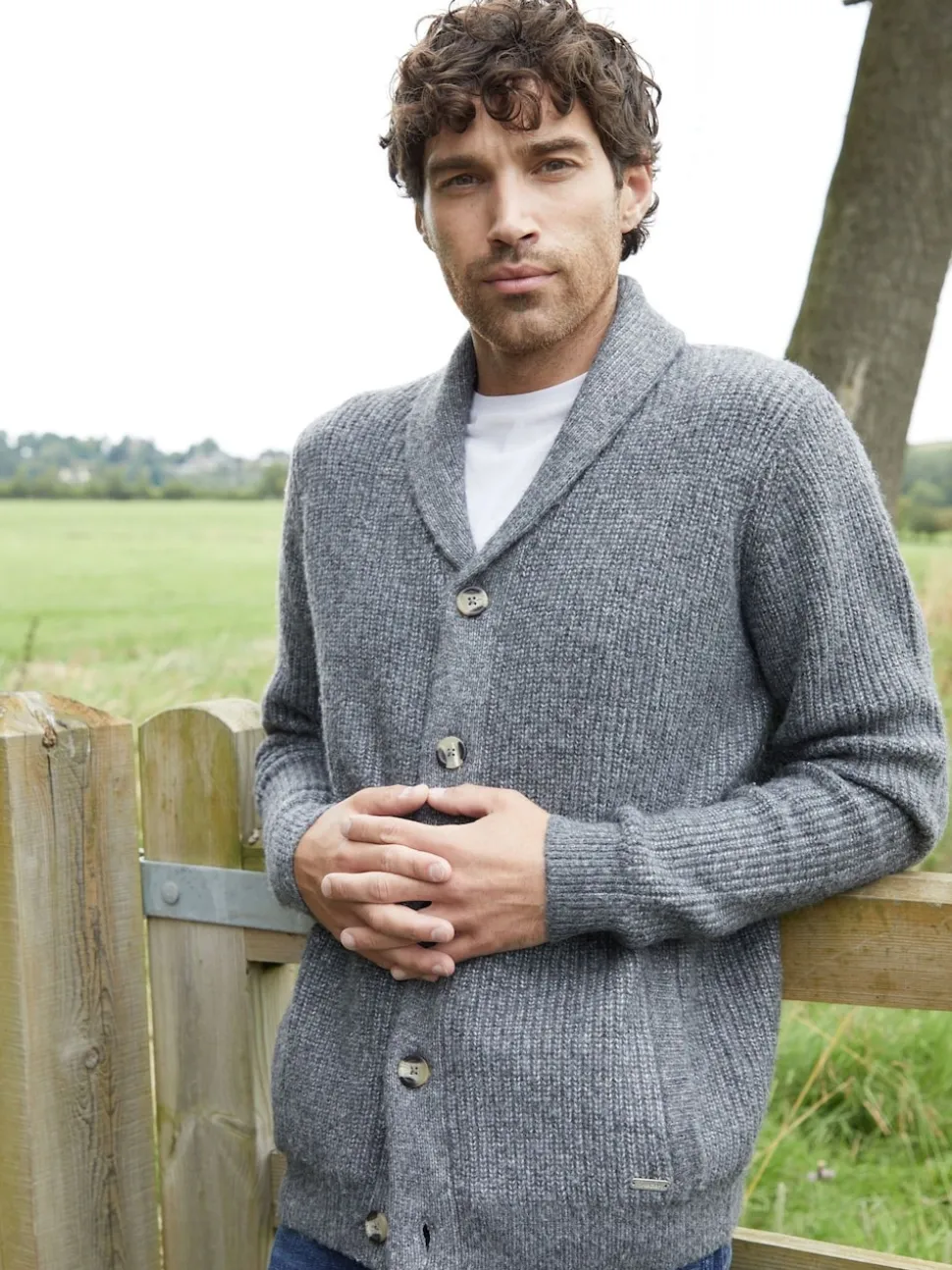 Gris – Cardigan Threadbare à col châle