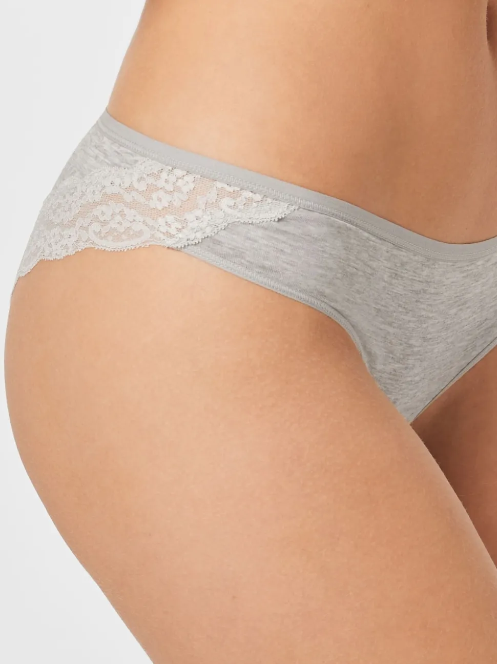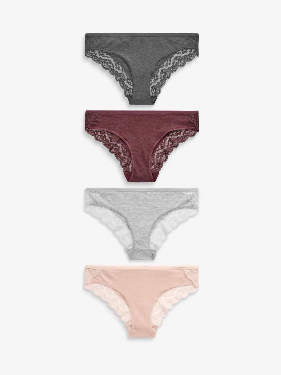 Gris chiné/rose/prune – Lot de 4 culottes en coton et dentelle