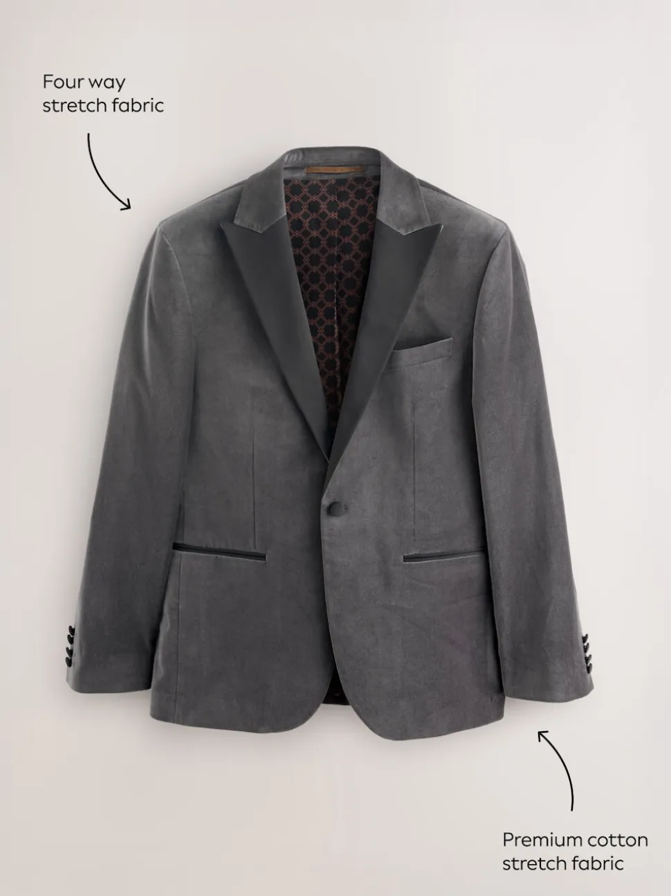 Gris – Slim Fit (Slim Fit) – Blazer Motionflex Extensible en velours