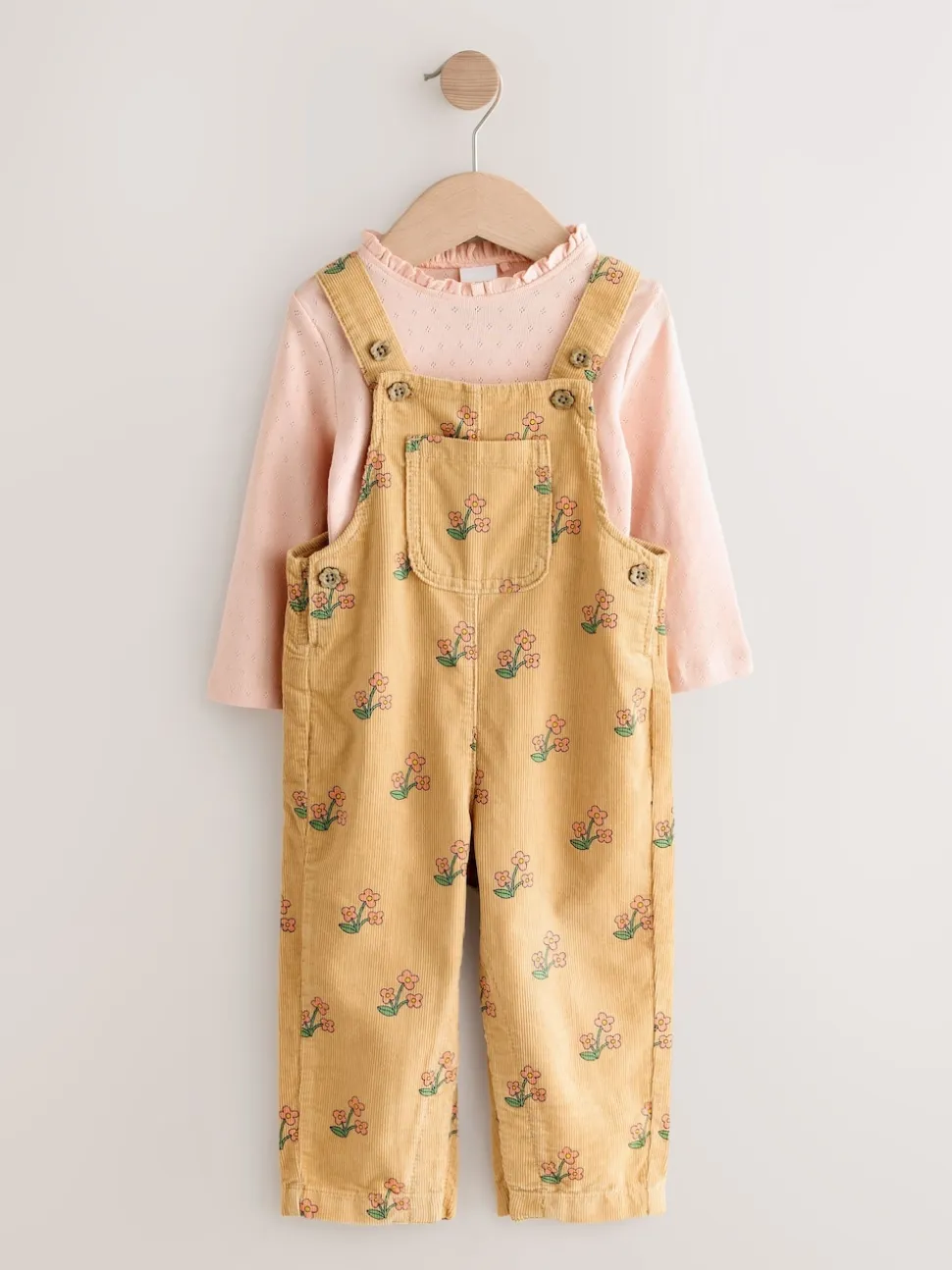jaune ocre – Ensemble salopettes et T-shirt en velours côtelé fleuri (3mois-7ans)