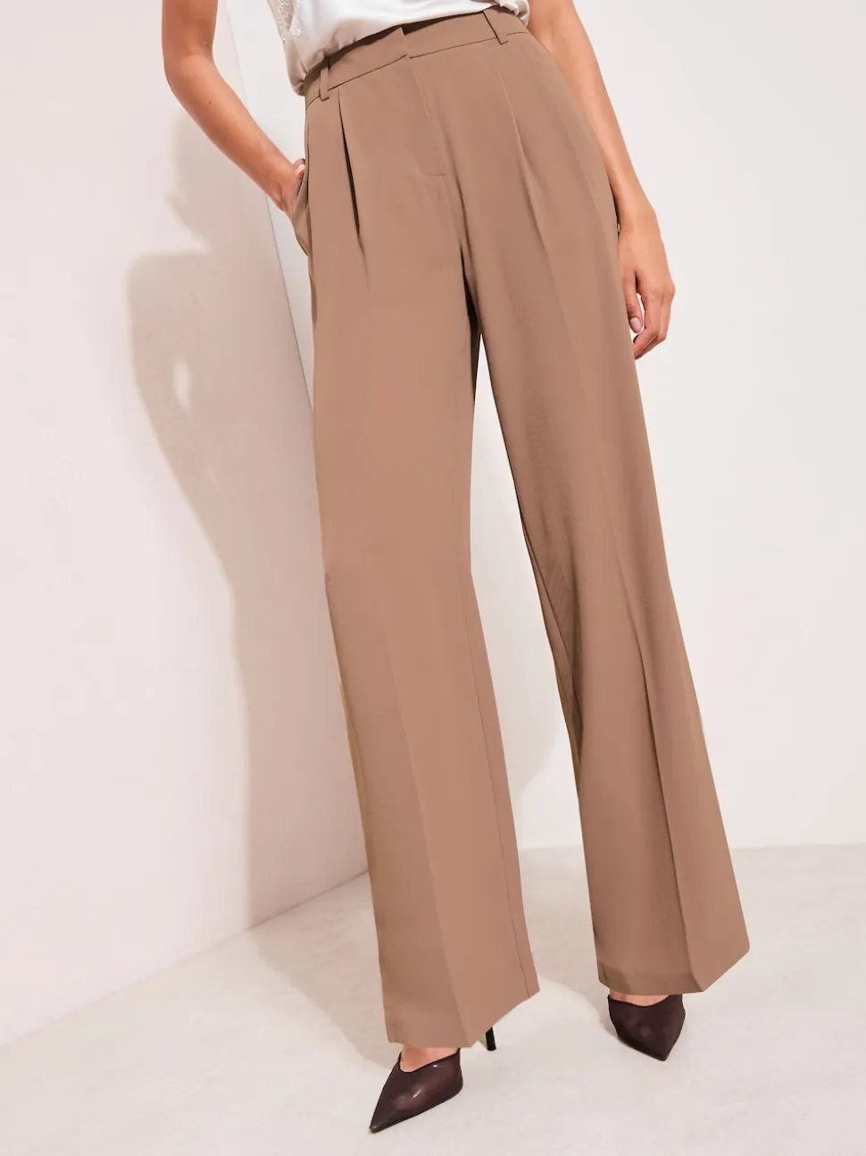 Latté neutre – Friends Like These Premium Elastic Back habillé Ample Pantalons