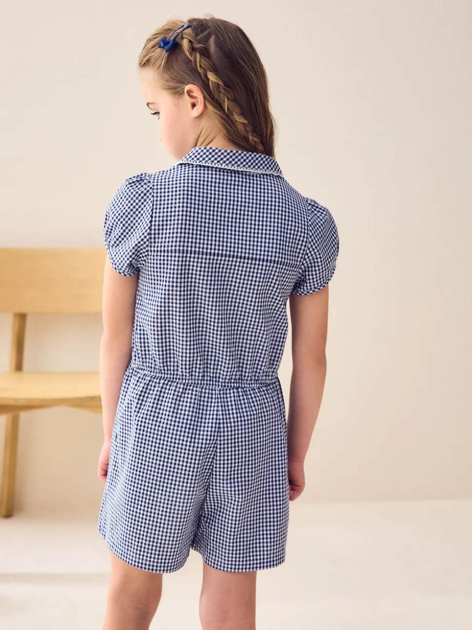 marine – Combinaison d’école Vichy en coton riche avec fermeture éclair (3-14ans)