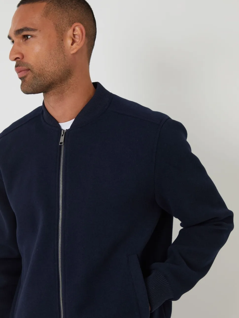marine – Threadbare bomber brossé en fausse laine