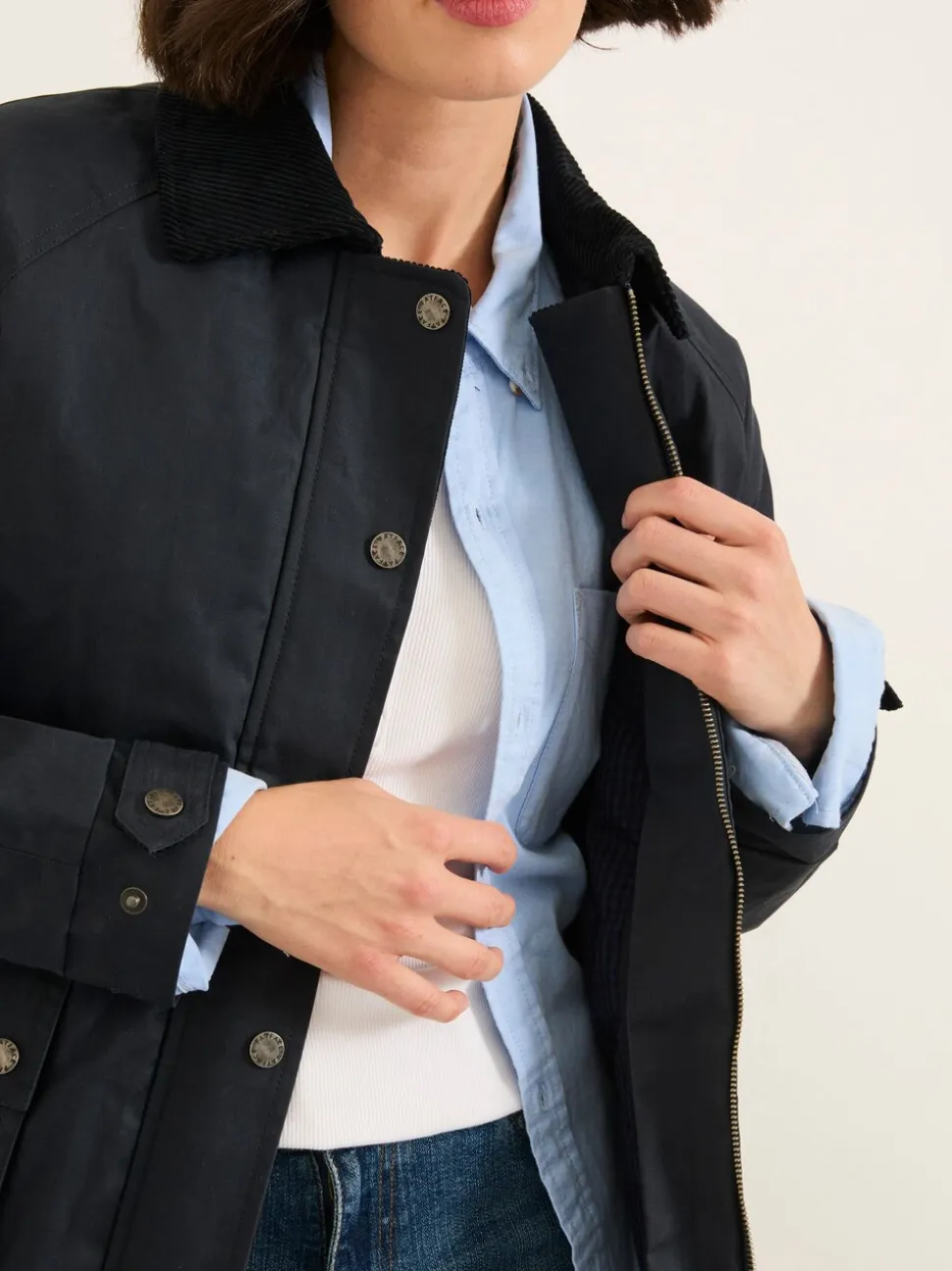 Régulier : du centre du dos à l’encolure 28″ / 71cm. Ne pas laver. Principal 100% coton avec enduit de cire. Doublure corps : 100% coton. Bordure 100% coton. Doublure manches 100% polyester recyclé. Rembourrage : 100% polyester recyclé.