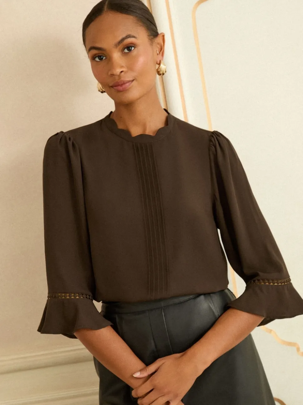 Marron chocolat – Love & Roses Chemisier à manches flûte 3/4