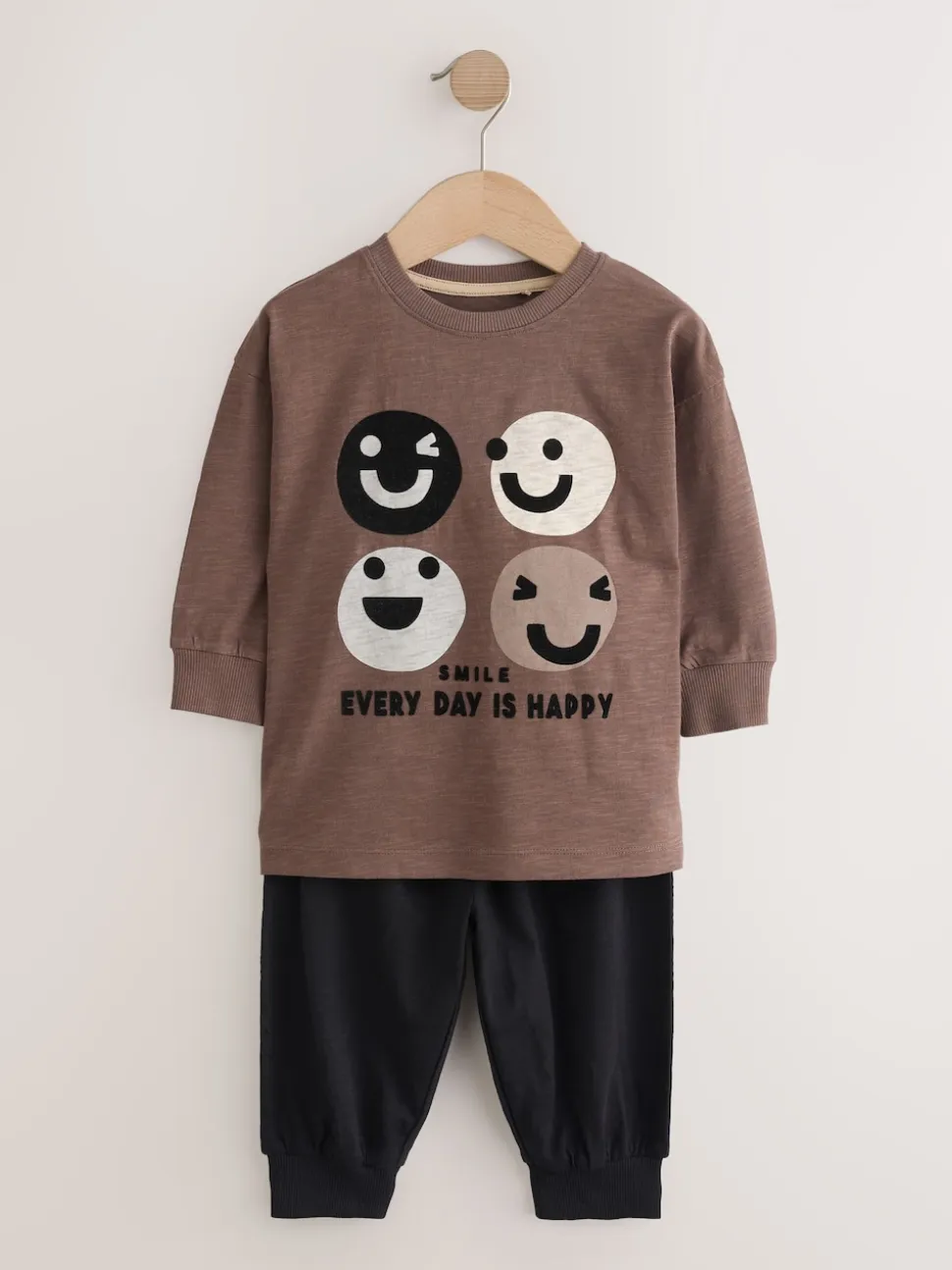 Marron/Crème heureux visage – Lot de 3 pyjamas oversize (9mois-10ans)
