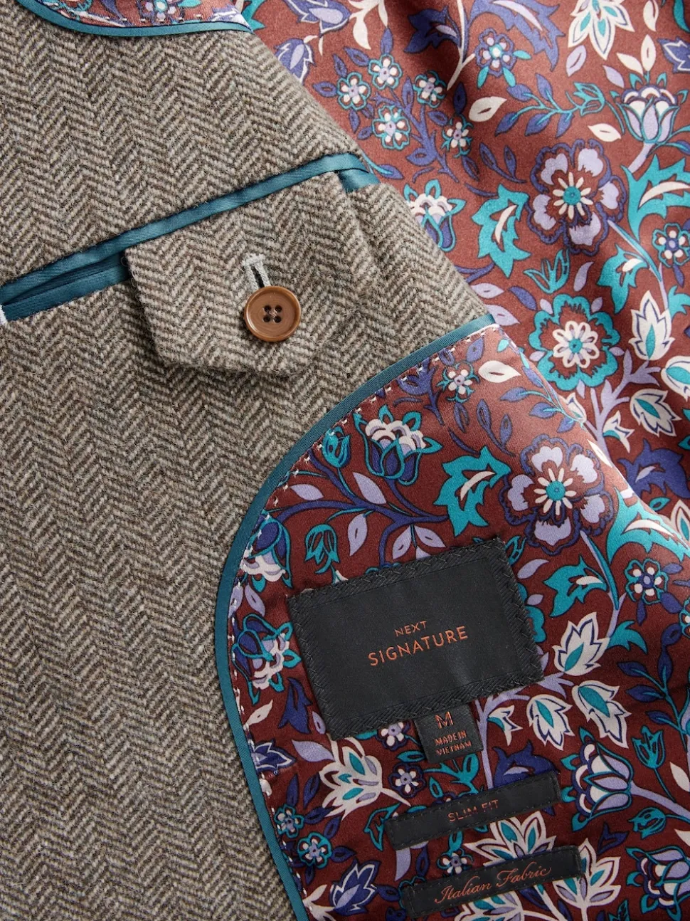 Marron taupe – Ajustement régulier – Blazer Signature Nova Fides en laine mélangée à chevrons