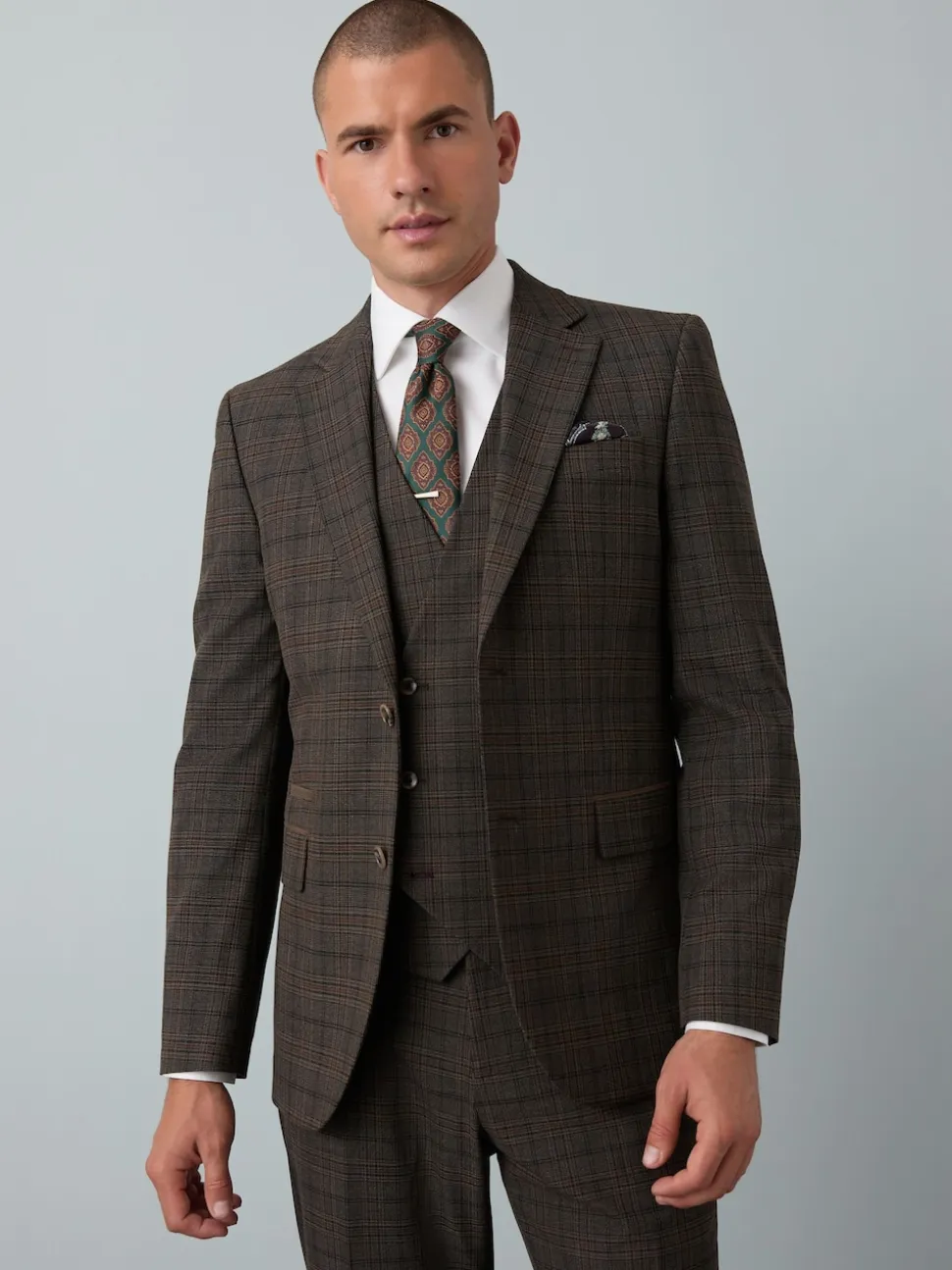 Marron – Veste de costume slim à carreaux