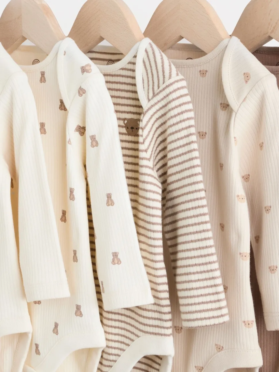 Motif ours neutre – Lot de 5 bodys à manches longues pour bébé