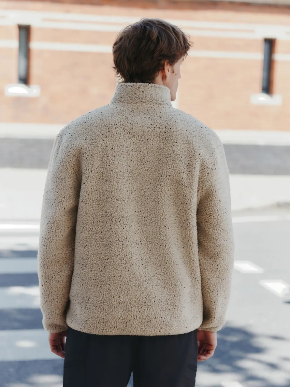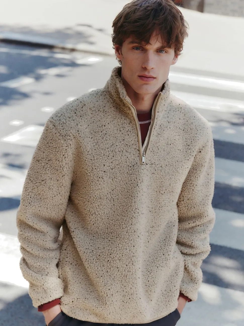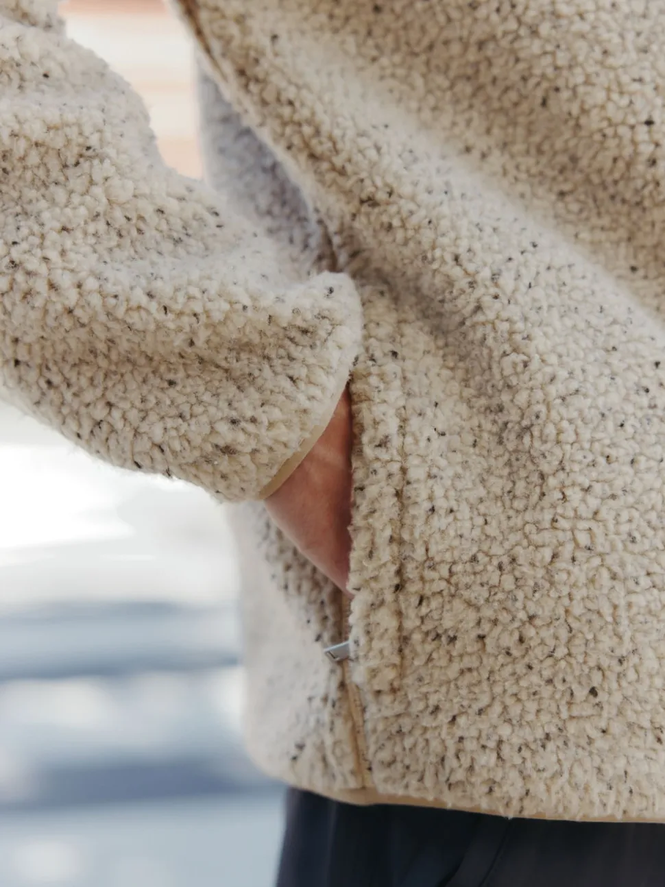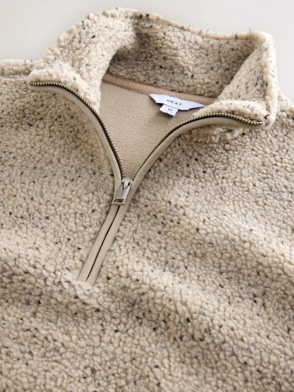 Nep écru chiné – Polaire en peau de mouton à col zippé