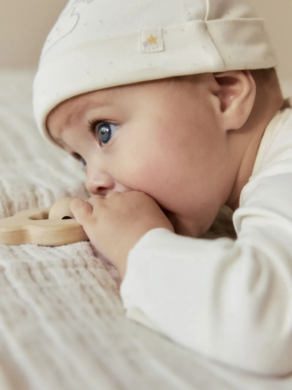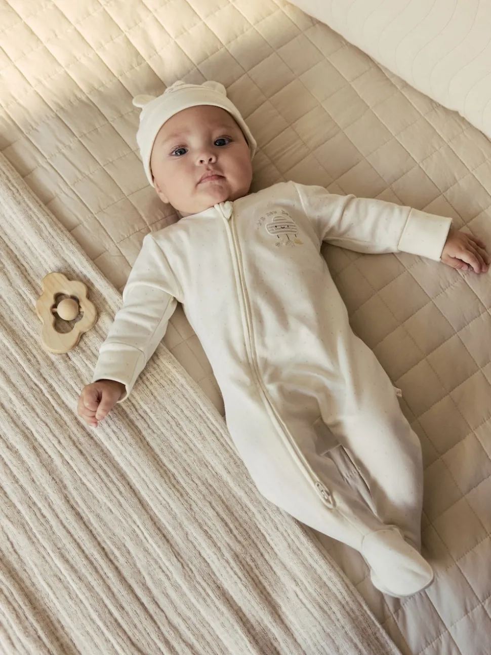 Lavable en machine. Dors-bien et bonnet 100 % coton. Avertissement : tenir à l’écart du feu et des flammes.