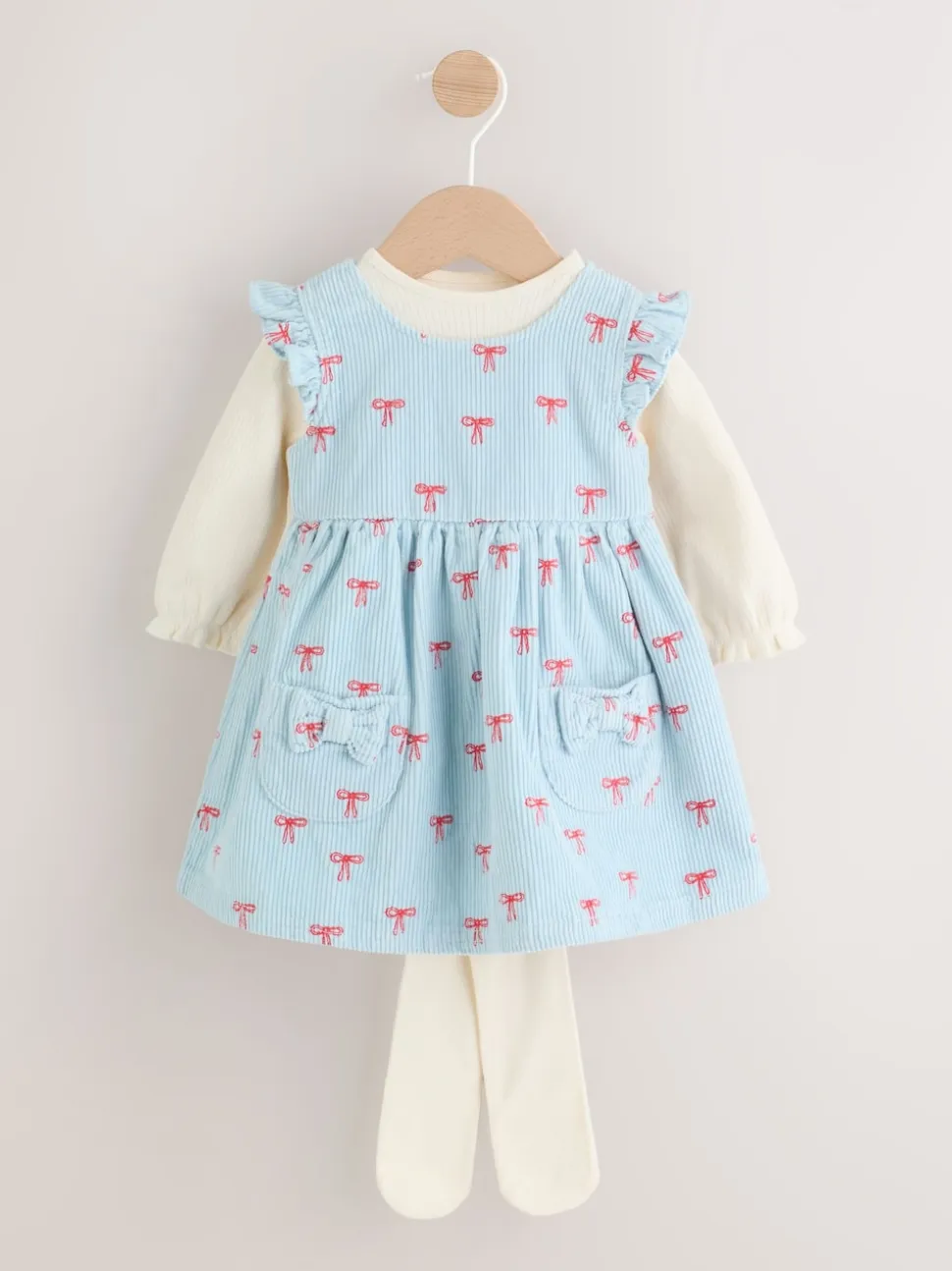 Nœud bleu – Ensemble body et collants à manches longues en velours côtelé pour bébé (0mois-2ans)