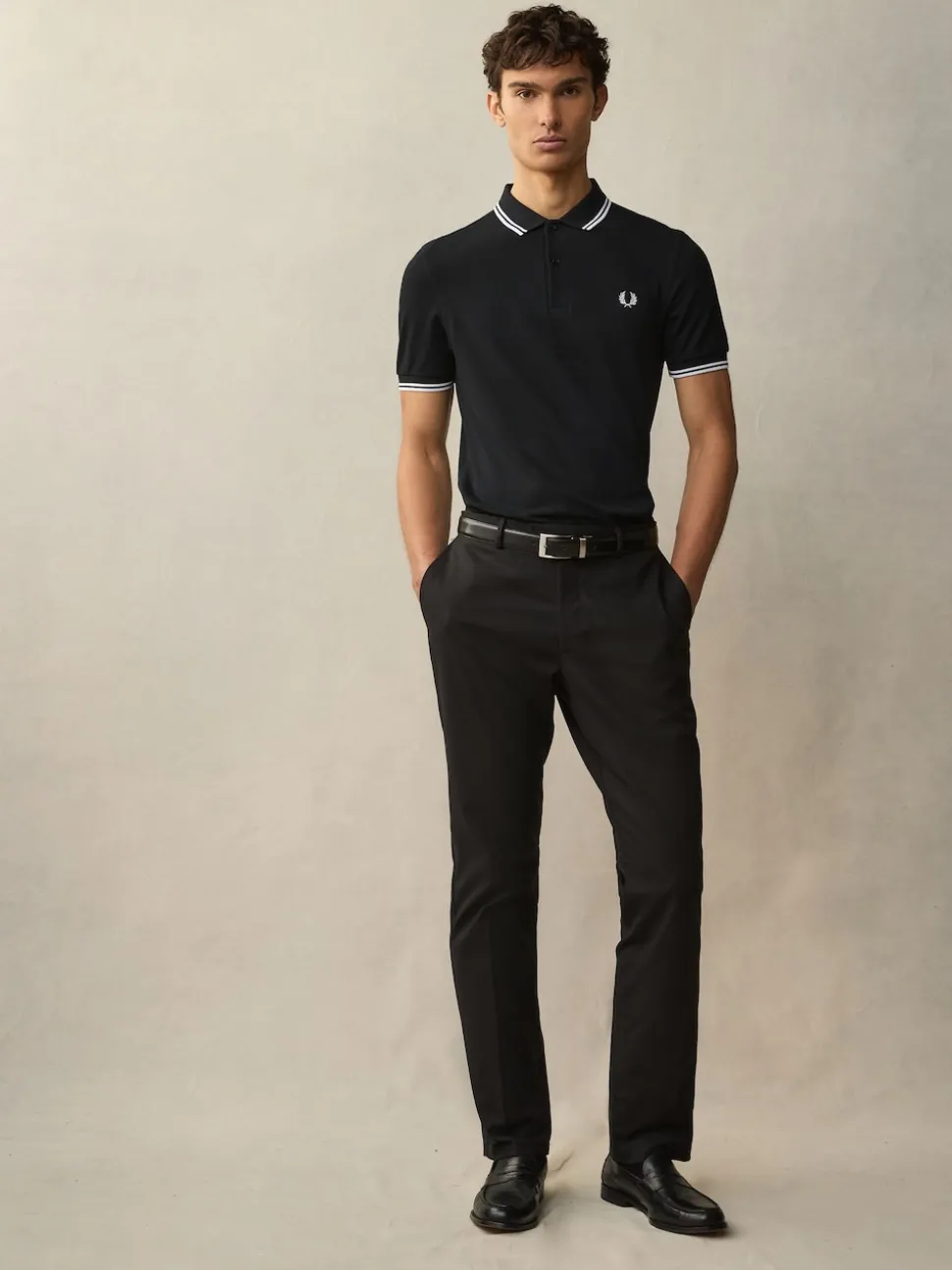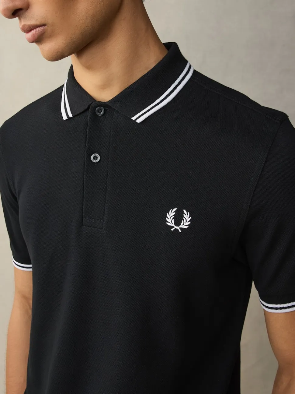 Noir/Blanc – Polo Fred Perry à liserés