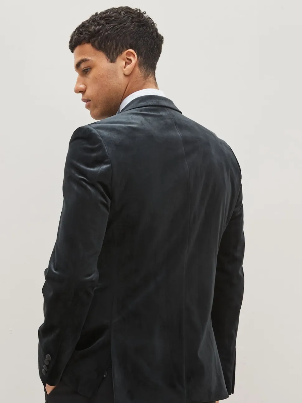 Noir – Blazer slim à double boutonnage en velours