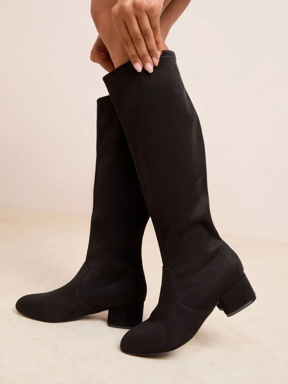 Noir – Friends Like These Bottes chaussettes hautes en faux suède à talons bloc