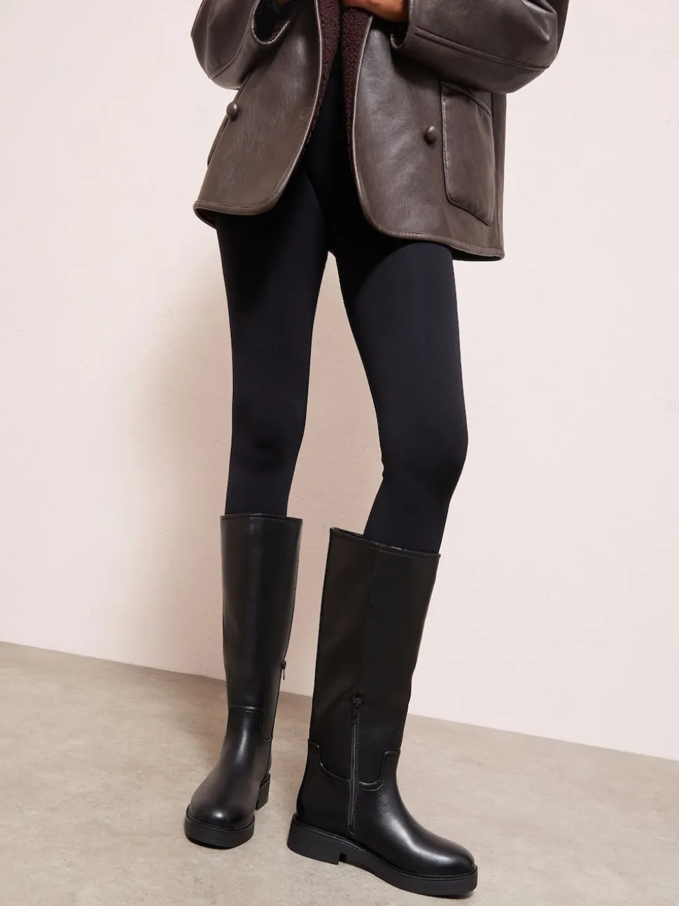 Noir – Friends Like These Bottes d’équitation longues décontractées plates à enfiler en similicuir