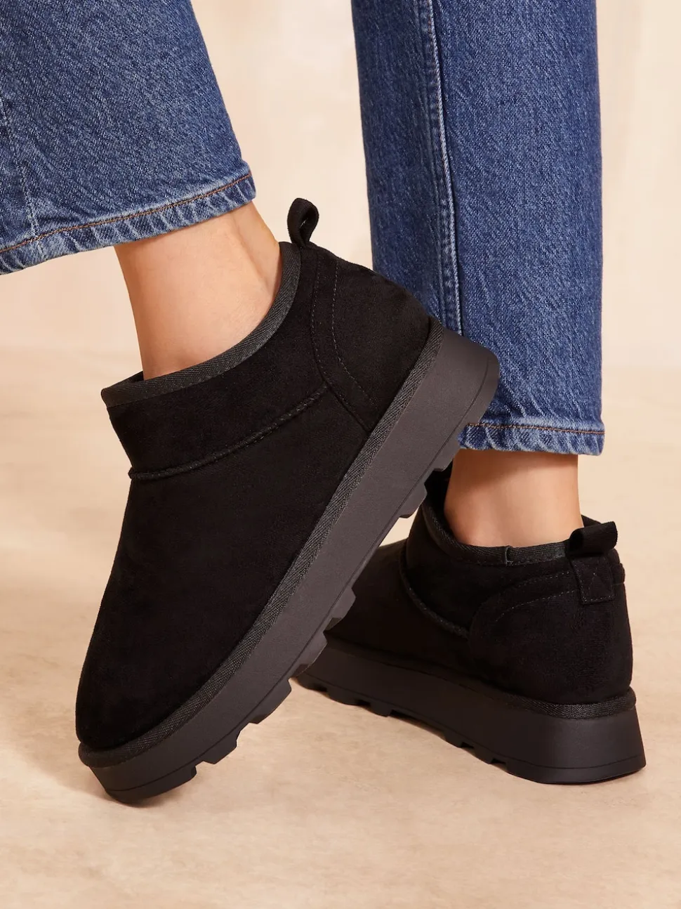 Noir – Friends Like These Bottes en daim douillette doublées de fausse fourrure