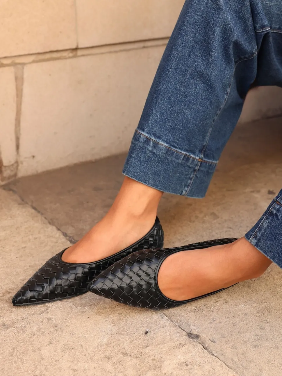 Noir – Linzi Ballerines tissées Talina à bout pointu