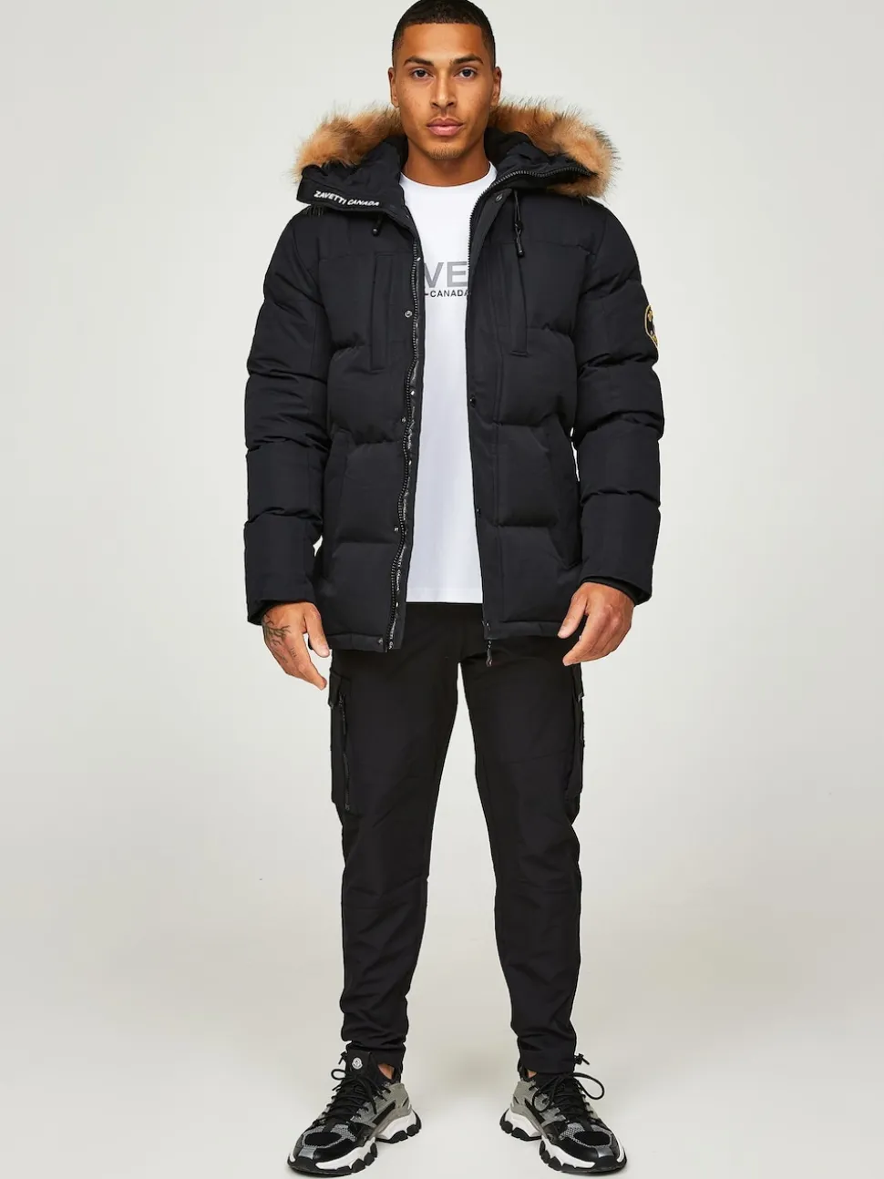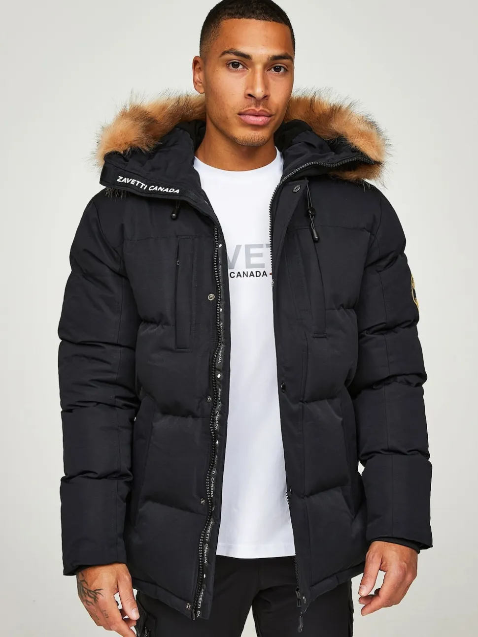 Noir – Zavetti Canada Mens Oshawa 2.0 Veste parka avec fausse fourrure détachable