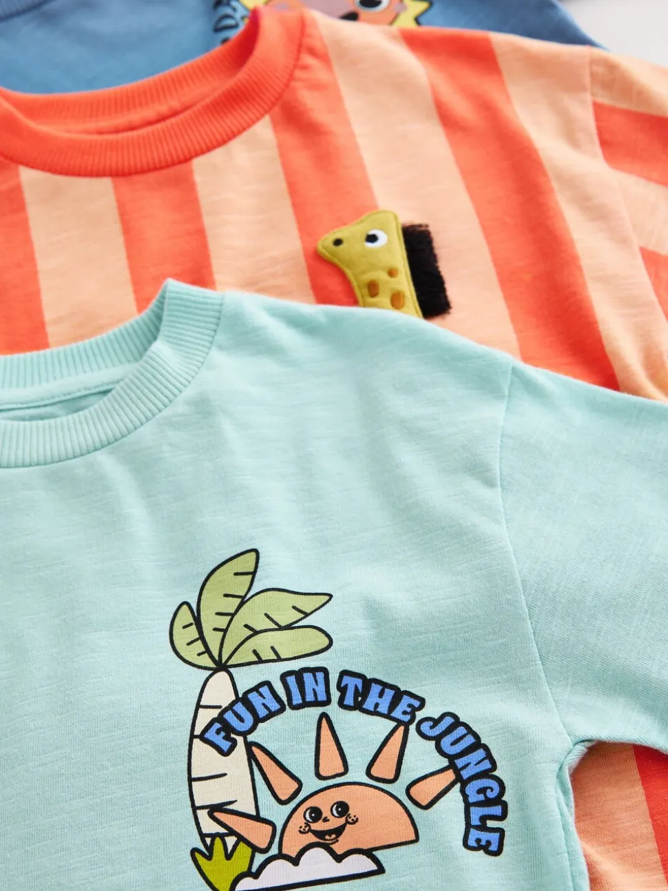 Orange motif safari – Lot de 3 t-shirts graphiques à manches courtes (3mois7ans)