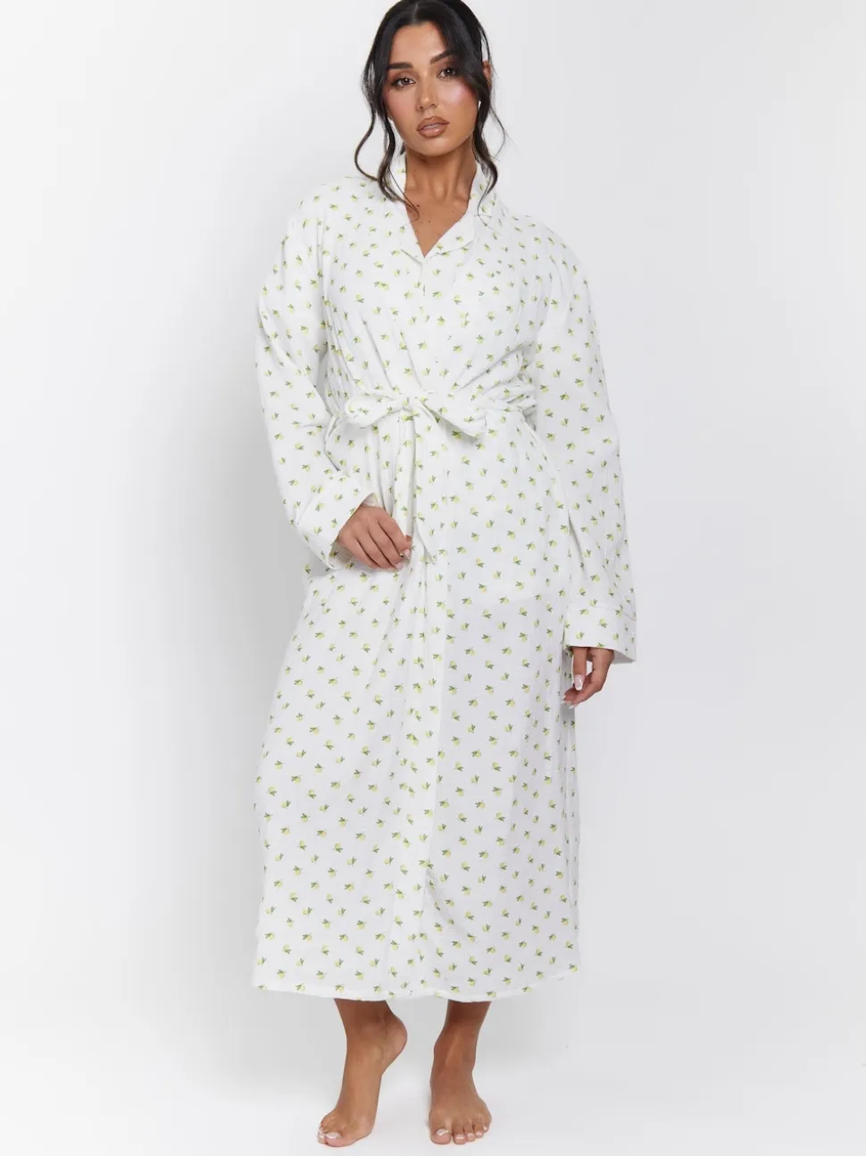 Peignoir Loungeable gaufré 100% coton imprimé citron