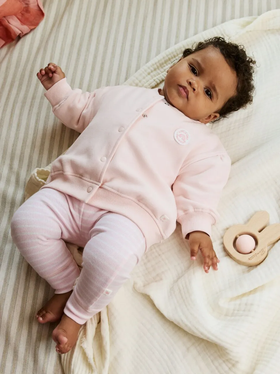 Lavable en machine. T-shirt 92% coton, 8% élasthanne. Leggings 95% coton, 5% élasthanne. Veste 80% coton, 20% polyester recyclé. Avertissement : tenir à l’écart du feu et des flammes.