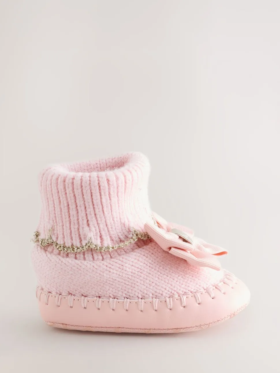 Rose – Chaussons en maille à bord festonné pour Bébé fille avec nœud