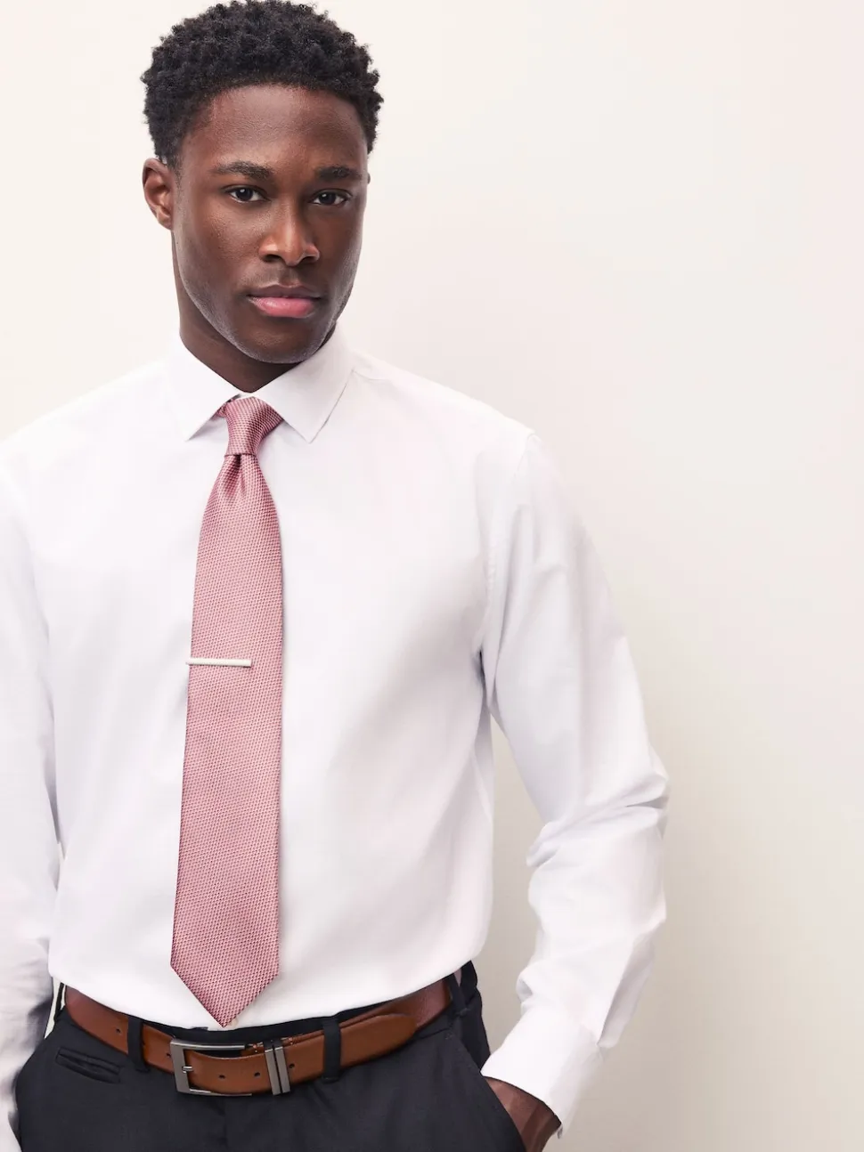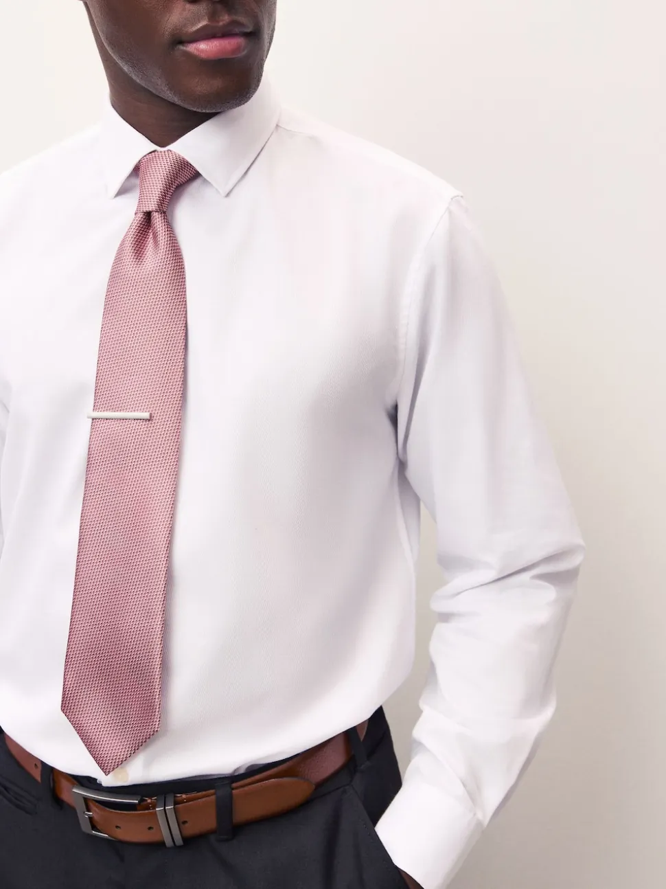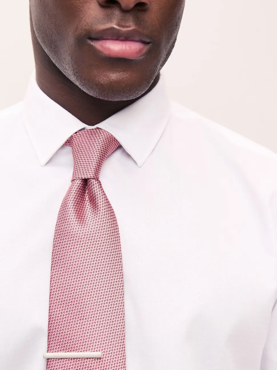 Rose corail – Cravate texturée avec pince à cravate