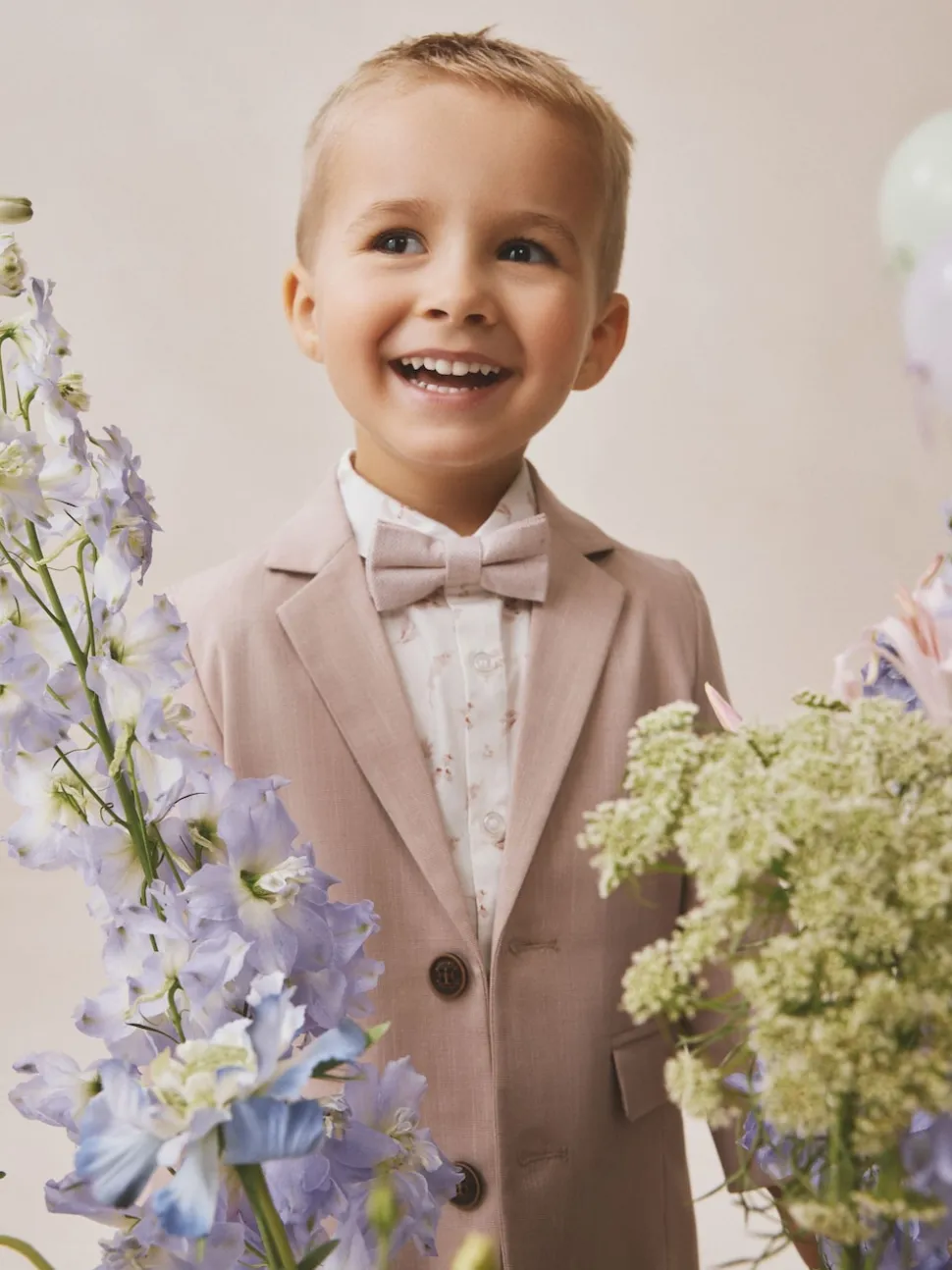 Rose – Ensemble pantalon blazer et nœud papillon (3mois à9ans)