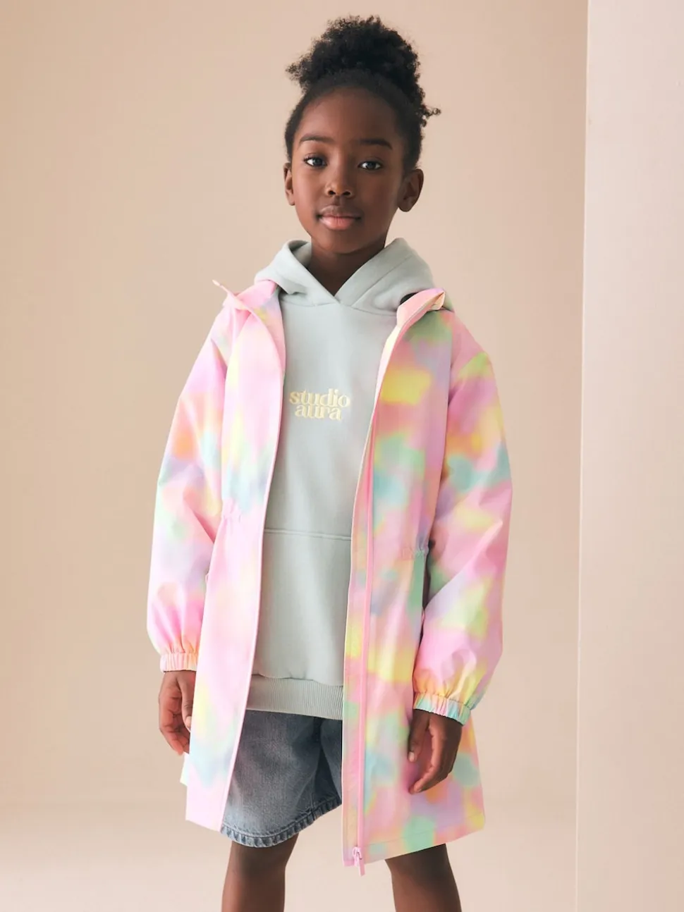 Rose imprimé marbré – Cagoule imprimée imperméable (3-16ans)