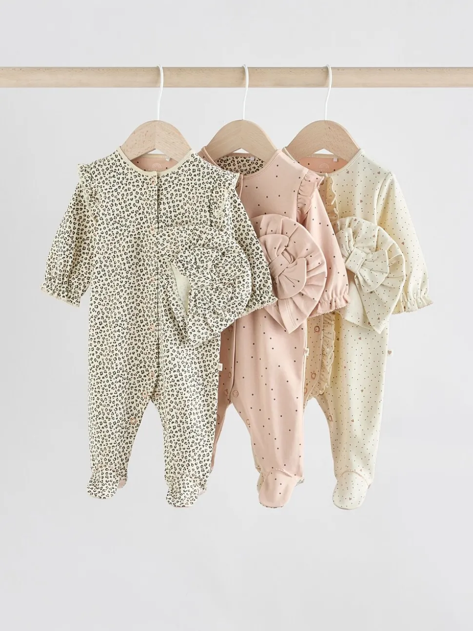 Rose – Lot de 3 dors-bien bébé avec turbans assortis (0mois2ans)