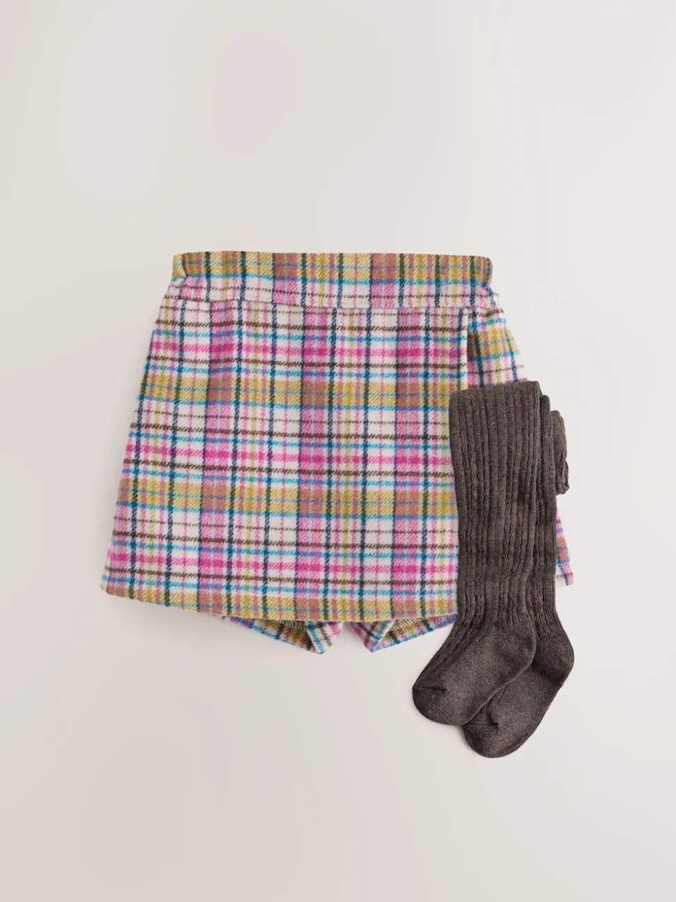 Rose/vison – Ensemble jupe à carreaux et collants (3mois-7ans)